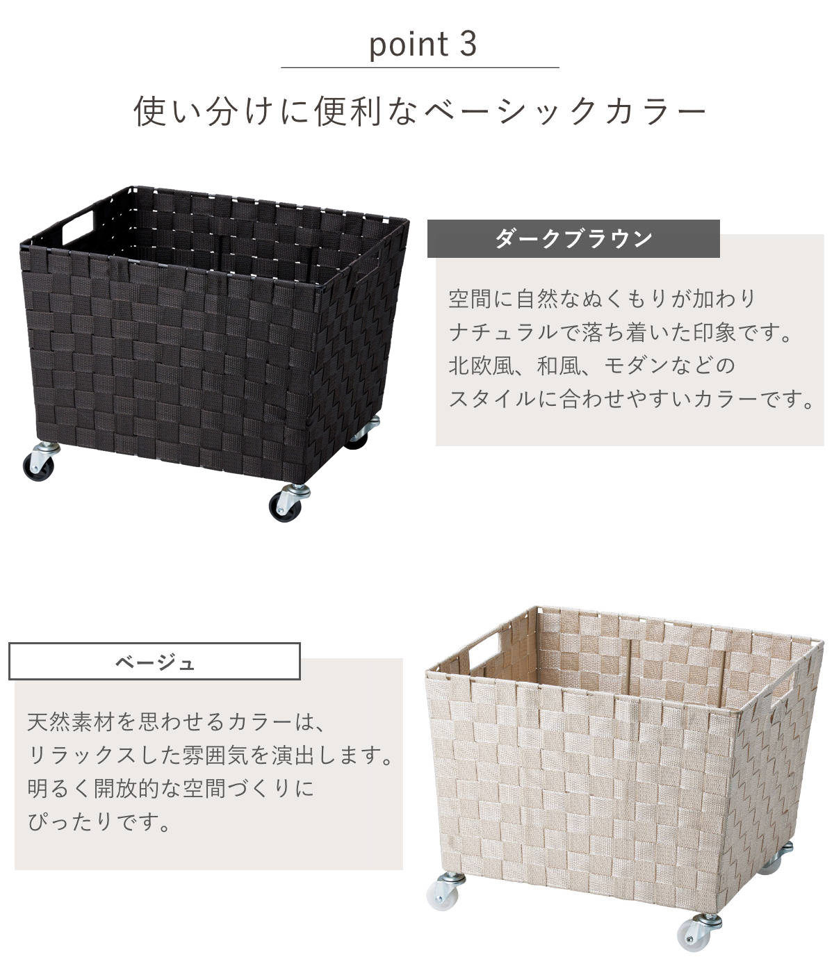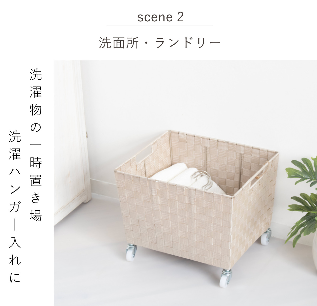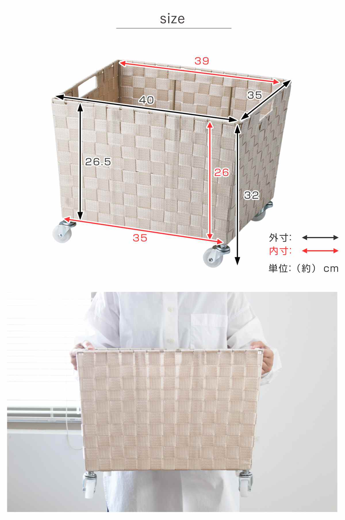 収納ボックス PPバスケット キャスター付き 荷物置き 幅40×奥行35×高さ26.5cm