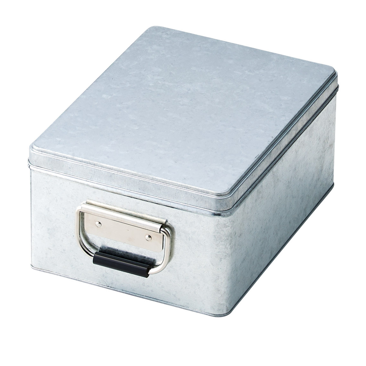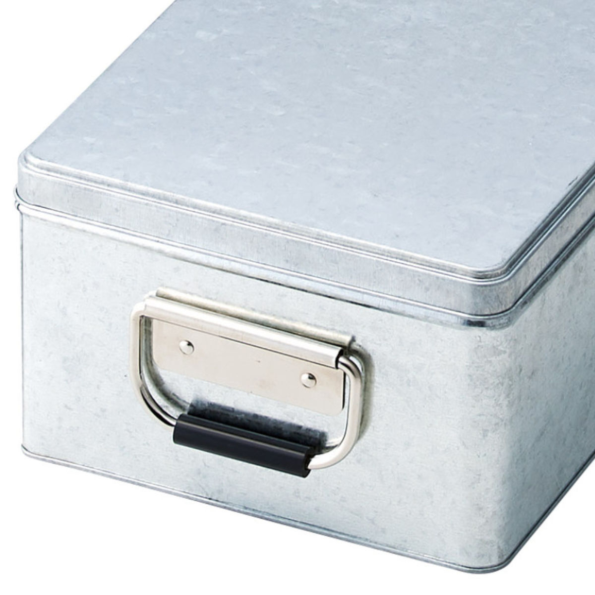 レトロな雰囲気のブリキのケースです。散らかっている物を入れるだけで、スッキリとスタイリッシュに片付きます。おもちゃ、衣類、工具などライフスタイルに合わせて便利に使えます。