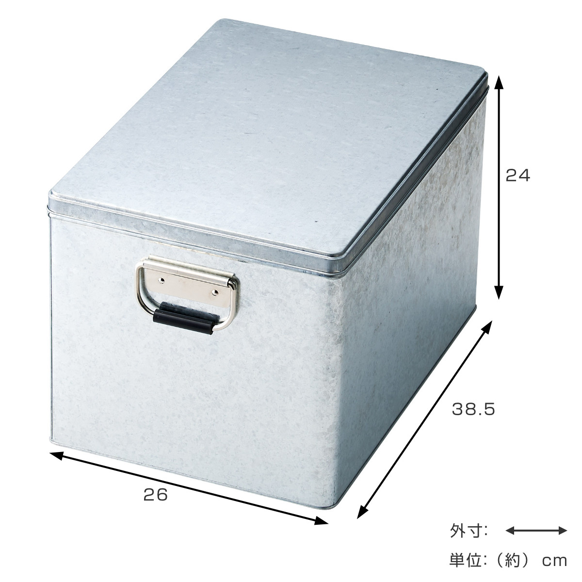 収納ボックス トタン収納 フル ブリキ ふた付き 幅26×奥行38.5×高さ24cm