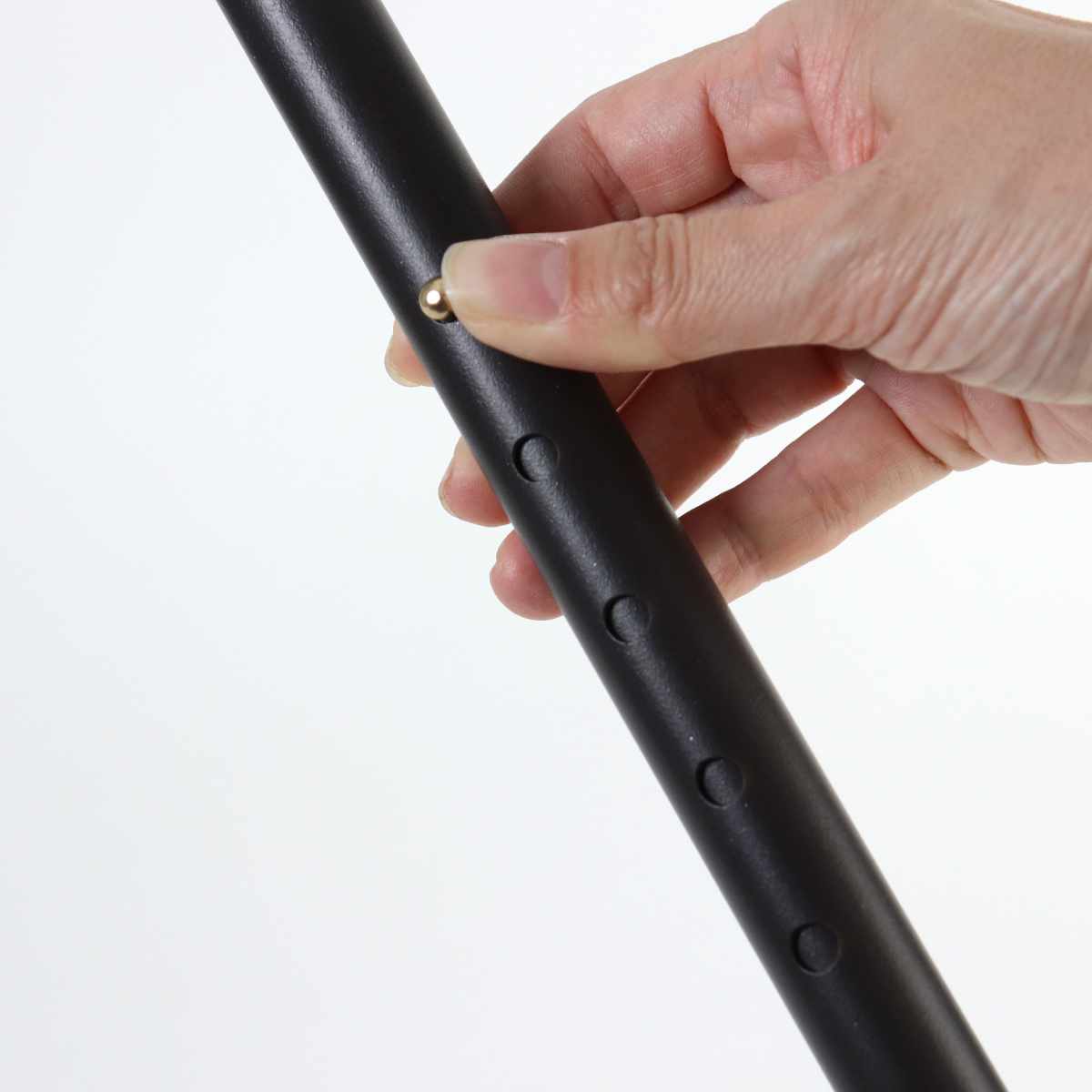 お使いになる方の身長にあわせて調節できます。ストッパーを押しながらシャフトをスライドさせ、長さを調節します。2.5cmピッチで9段階調節できます。