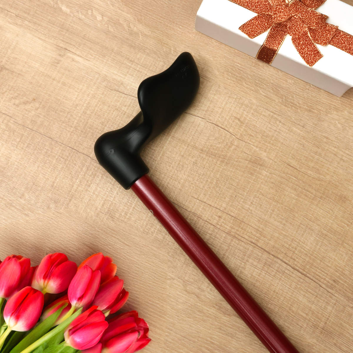 握力が弱い方も安定して突けるリハビリ用杖です。最大の特徴は、オーストリアの医師・フィッシャー博士考案の幅広グリップ。手のひらと母子球(親指の付け根)でしっかりと握れます。