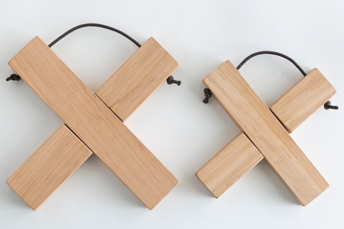 ●2本の木をクロスに組んで使う、山桜材を使った鍋敷きです。