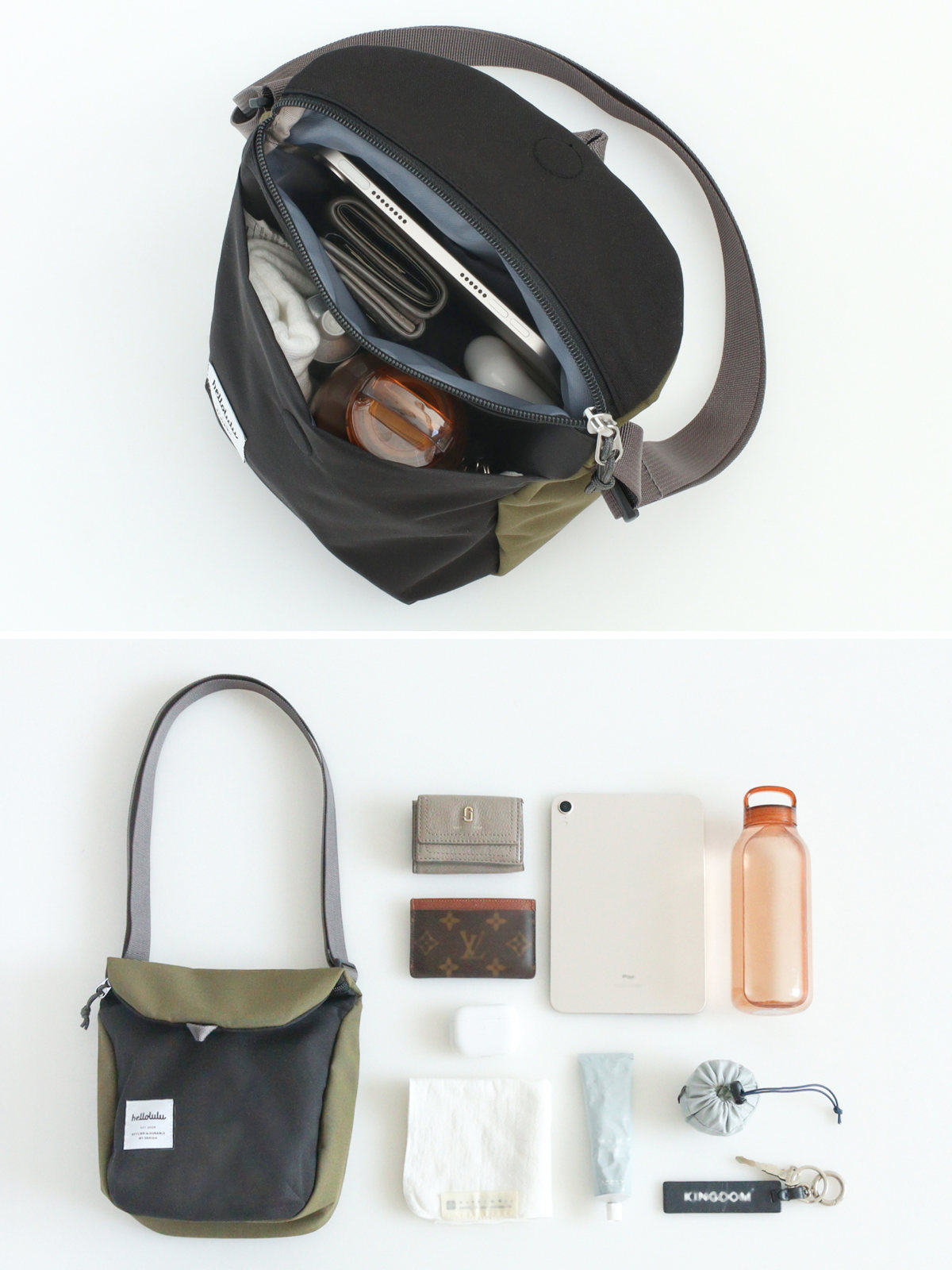 ハンカチやハンドクリームなどの小物類はもちろん、水筒や8インチのタブレットも入る大きさです。しっかりとしたマチがあるので、見た目以上の収納力があります。