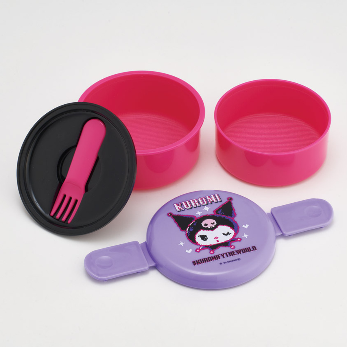 便利なミニフォーク付き、丸型ランチボックス