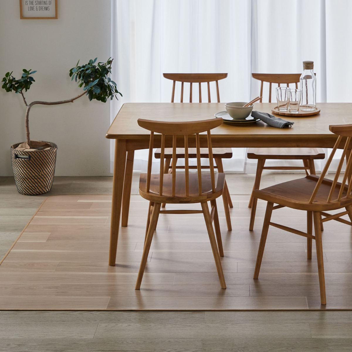 サラサラとした心地よいダイニングラグです。床やフローリングを傷や汚れからしっかり守り、大切な空間をいつまでもキレイに保ちます。シンプルなデザインでお部屋のインテリアにもなじみやすく、簡単に敷けるため、手軽に使い始めることができます。