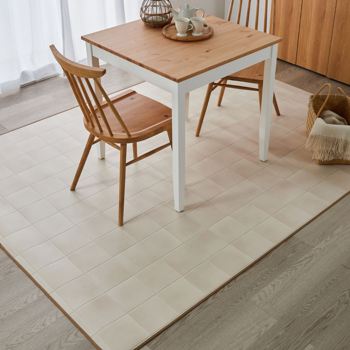 サラサラとした心地よいダイニングラグです。床やフローリングを傷や汚れからしっかり守り、大切な空間をいつまでもキレイに保ちます。シンプルなデザインでお部屋のインテリアにもなじみやすく、簡単に敷けるため、手軽に使い始めることができます。