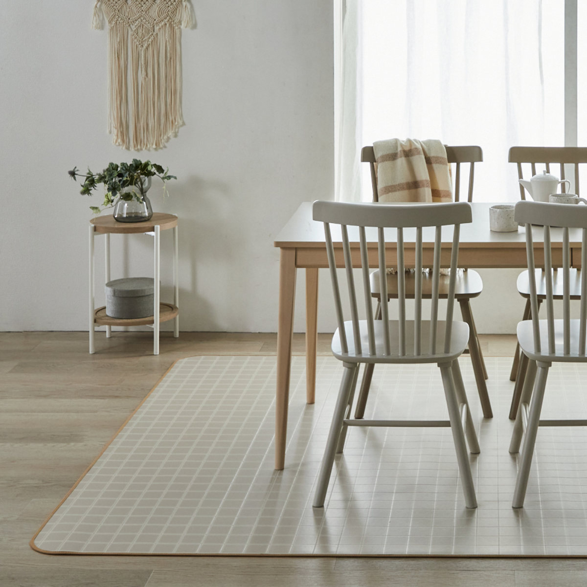サラサラとした心地よいダイニングラグです。床やフローリングを傷や汚れからしっかり守り、大切な空間をいつまでもキレイに保ちます。シンプルなデザインでお部屋のインテリアにもなじみやすく、簡単に敷けるため、手軽に使い始めることができます。