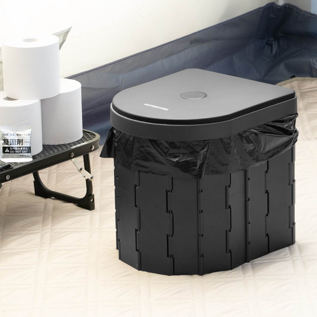 簡易トイレ ポータブルトイレ D型 折りたたみ コンパクト ゴミ袋 凝固剤 収納袋付き