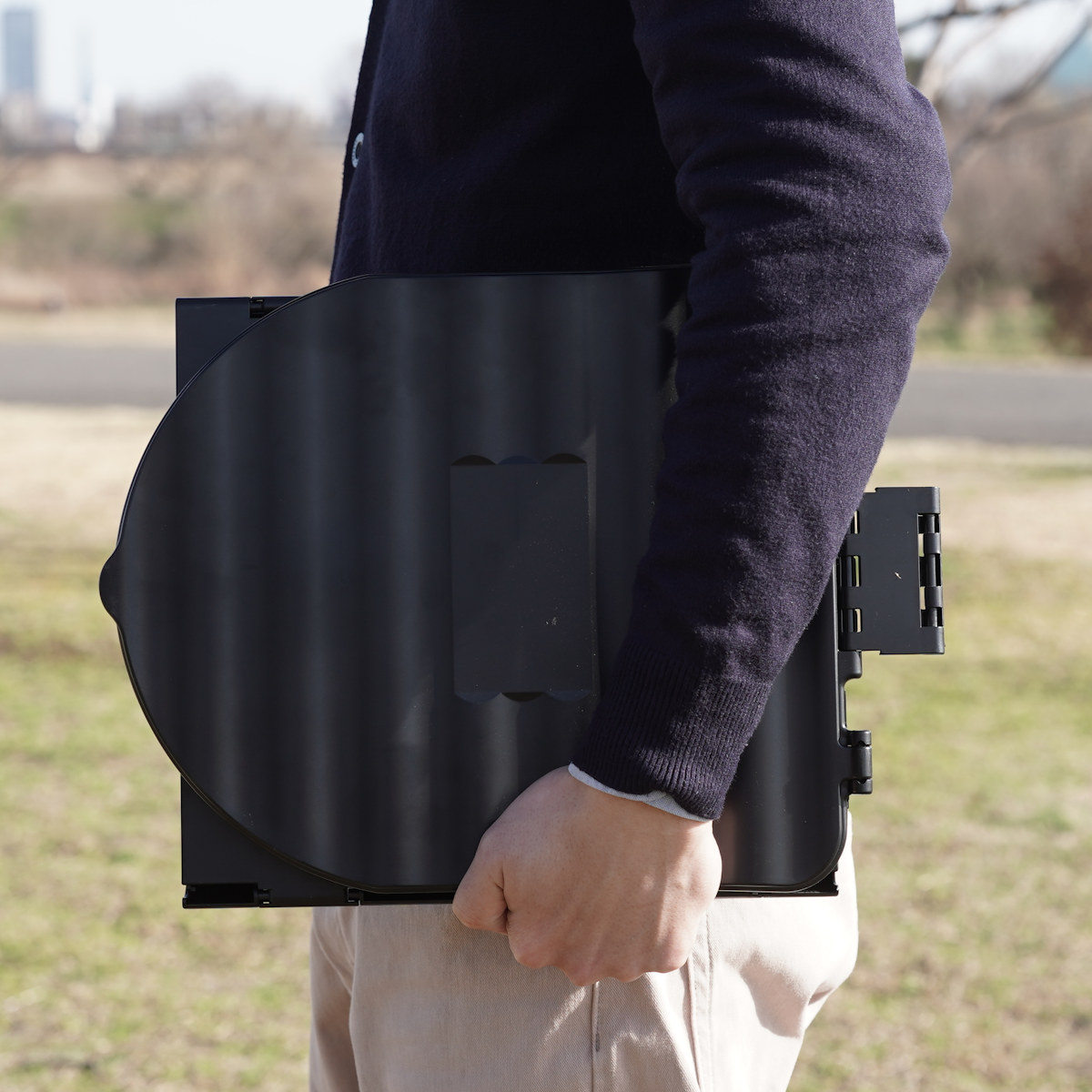 軽量なので持ち運びもしやすいです。コンパクトに折りたためるので、保管する際には、付属の収納ケースに入れて、押し入れや車のトランクなどに収納できます。