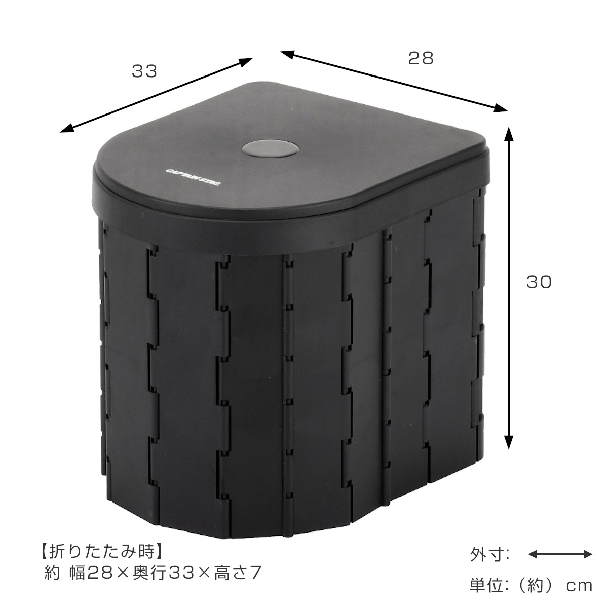 | サイズ | 約 幅28×奥行33×高さ30(cm) 折りたたみ時:約 幅28×奥行33×高さ7(cm) 汚物袋:約 60×60(cm) |