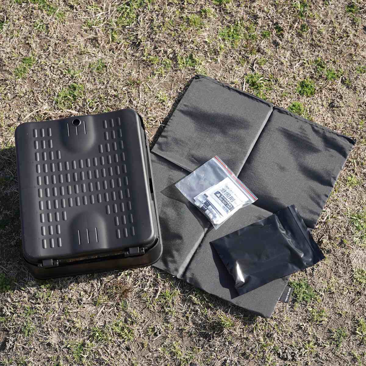 | 材質 | 本体:ポリプロピレン 凝固・脱臭剤:高分子ポリマー・ヤシ殻活性炭 汚物袋:ポリエチレン 収納ケース:ポリエステル |