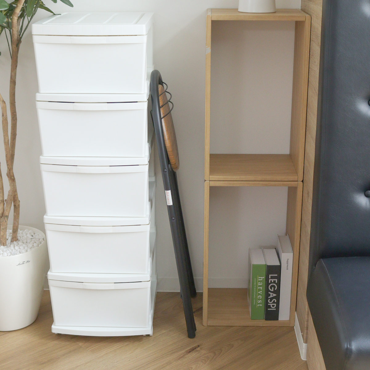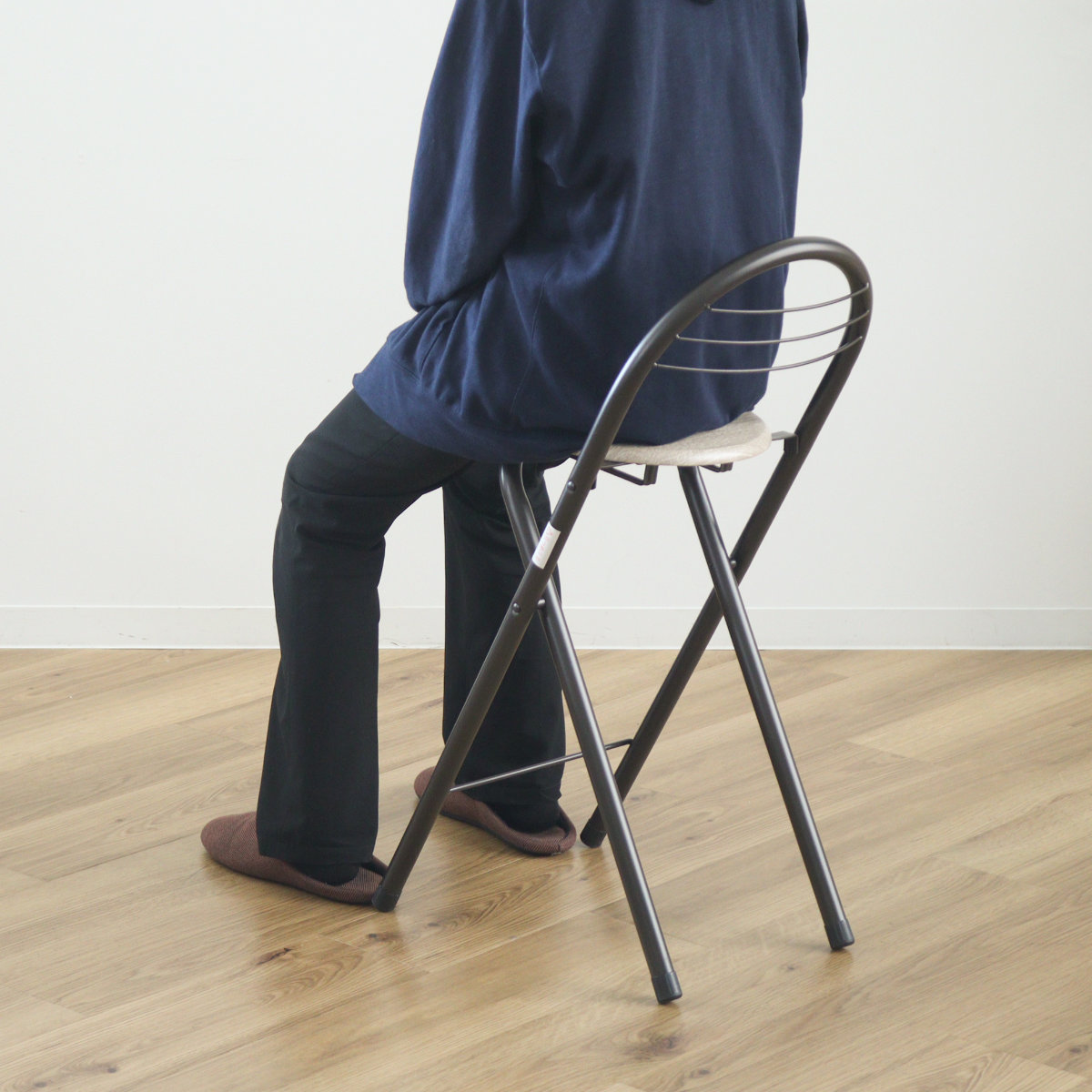 座面高が約58cmと一般的な折りたたみチェアより少し高めのチェアです。立ち座りがしやすいので、キッチンやメイク・ドライヤーの際の腰掛け、来客時の補助いすなど様々な場面で活躍してくれます。