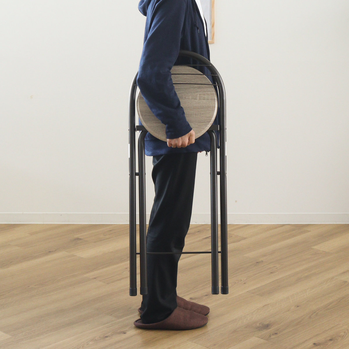 | サイズ | 約 幅36×奥行43.5×高さ81(cm) 座面高:約 58(cm) 折りたたみ時:約 幅36×奥行8×高さ91(cm) |