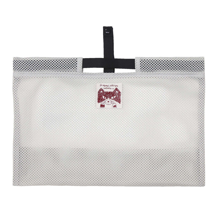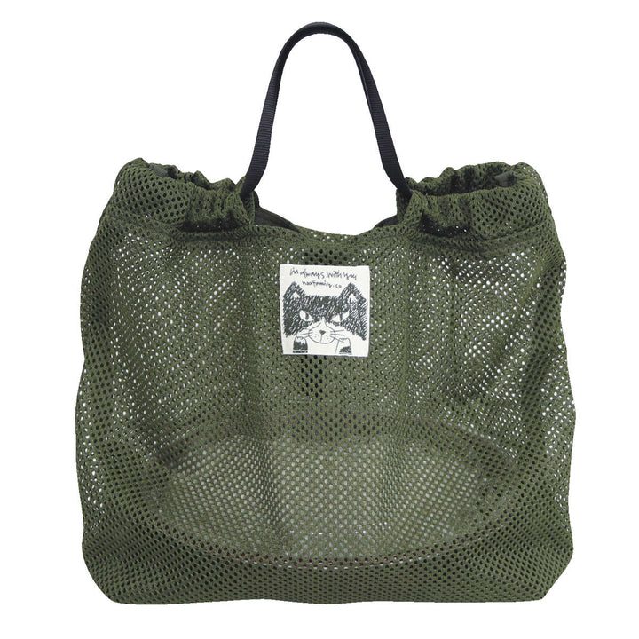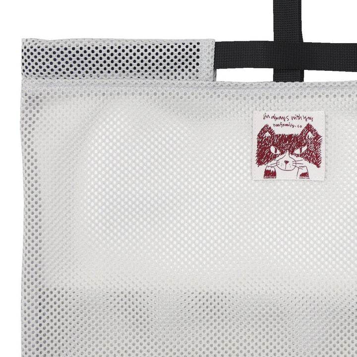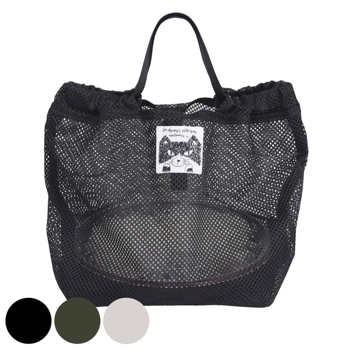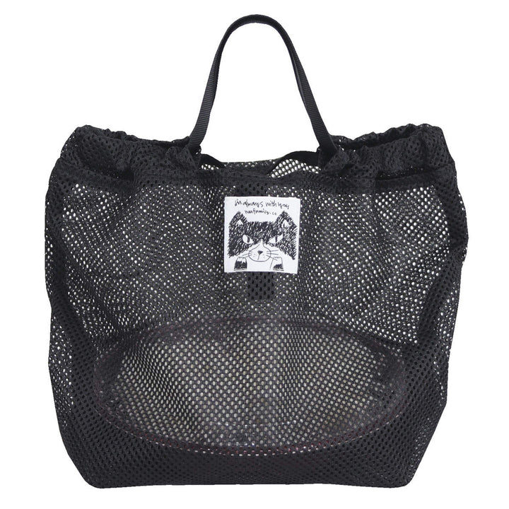 程よくシースルーなメッシュ素材がお洒落なデザイン。ネコの「ハチ」くんが描かれたネームが可愛らしいくて、いつも一緒にお買い物をしているような気分になれます。