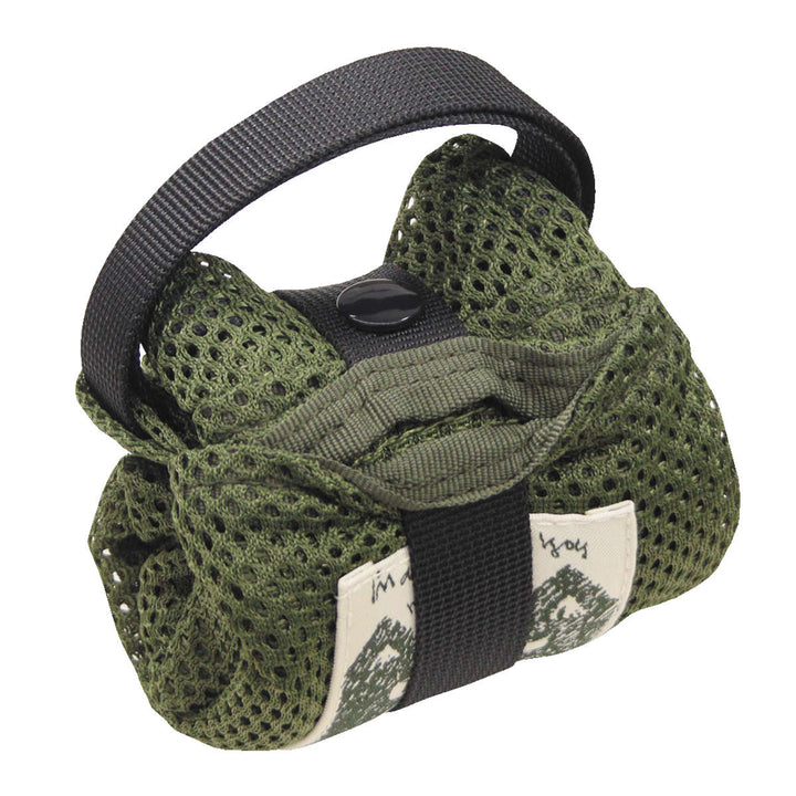 くるっと丸めるように折りたたんで、ボタンで留めればカバンや車の収納内に入れやすくなります。ボタンが付いた紐はバッグに縫い付けられているので、無くしたり忘れたりする心配もありません。