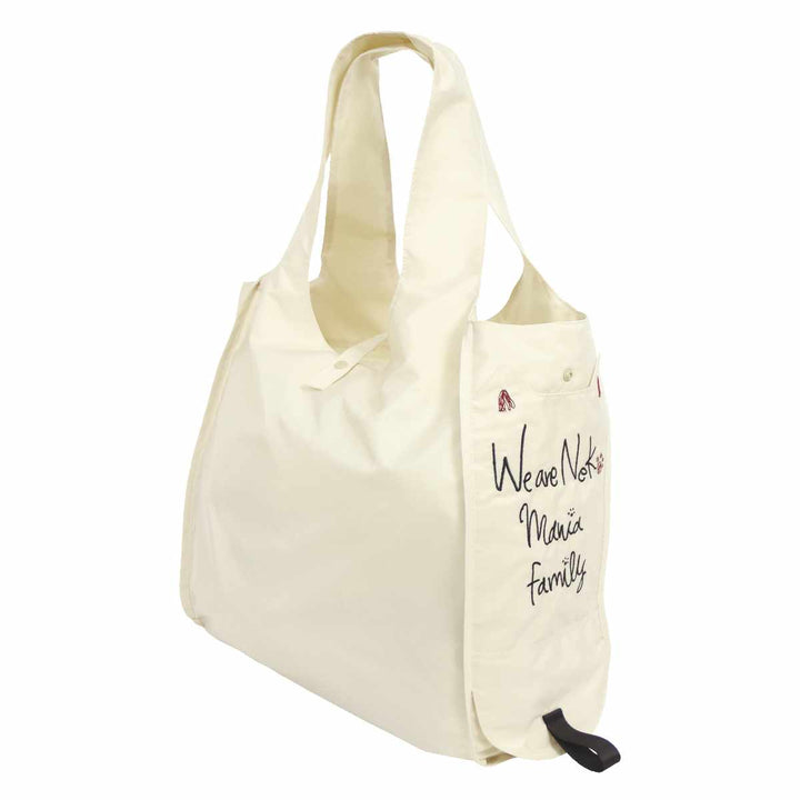 サイドのネコポケットがかわいいエコバッグです。ロゴの中にある小さな肉球とネコミミが、ネコ好きにはたまらないデザインです。マチ付きなのでたっぷり入って、毎日のお買い物にもたくさん買う日にもぴったりです。