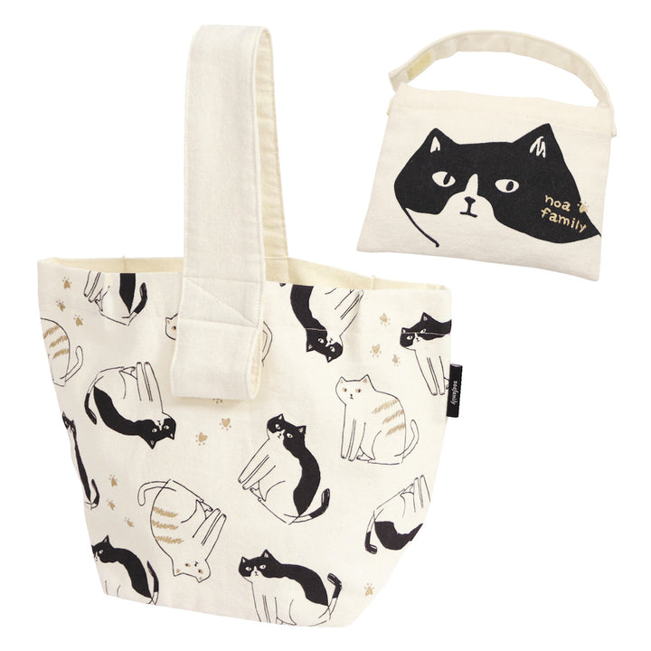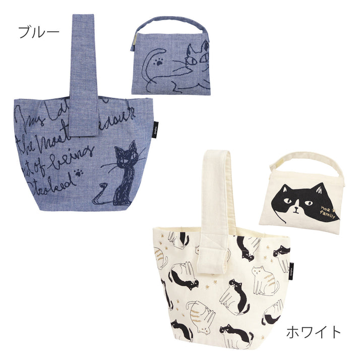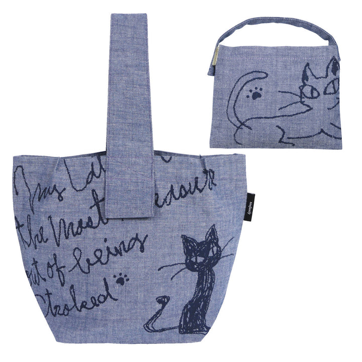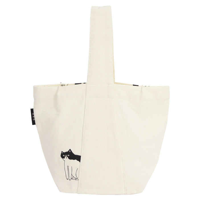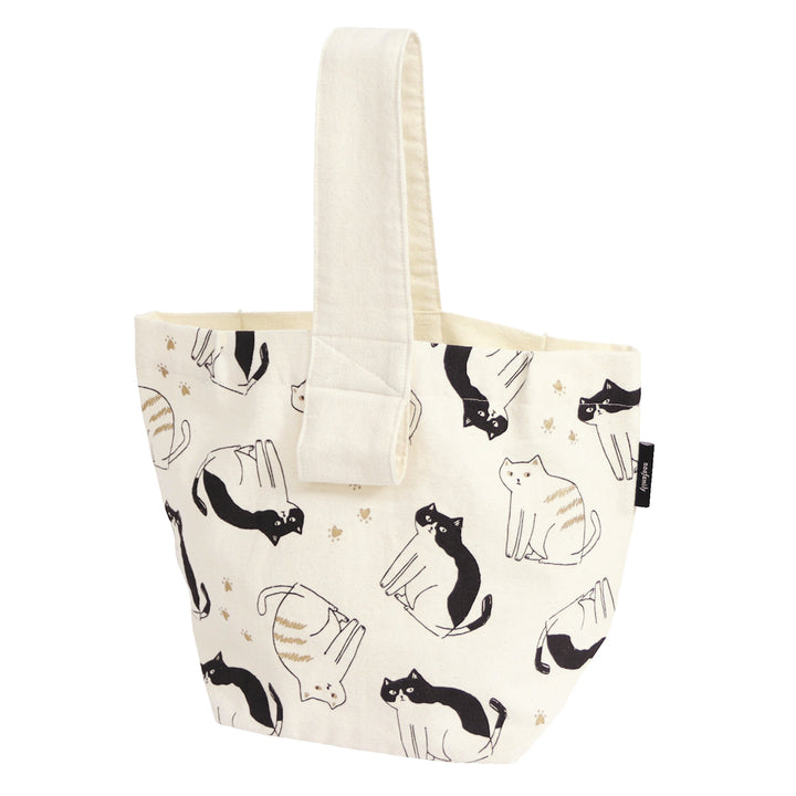 マチ幅が16cmと広めなので、コンビニのお弁当やサンドイッチ、お惣菜などを傾けずに入れることができる、ミニバッグ付きコンビニバッグです。ラフな猫のプリント柄がさりげないオシャレを演出してくれます。