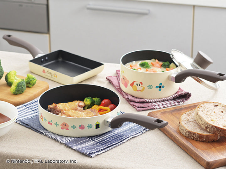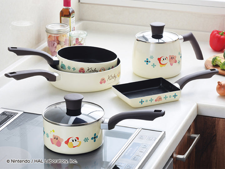 星のカービィのキッチンウェアシリーズには、卵焼き器、フライパン20cm、フライパン24cm、片手鍋、マルチクックパンがございます。シリーズで揃えれば、キッチンが一気にハッピーな雰囲気になります。