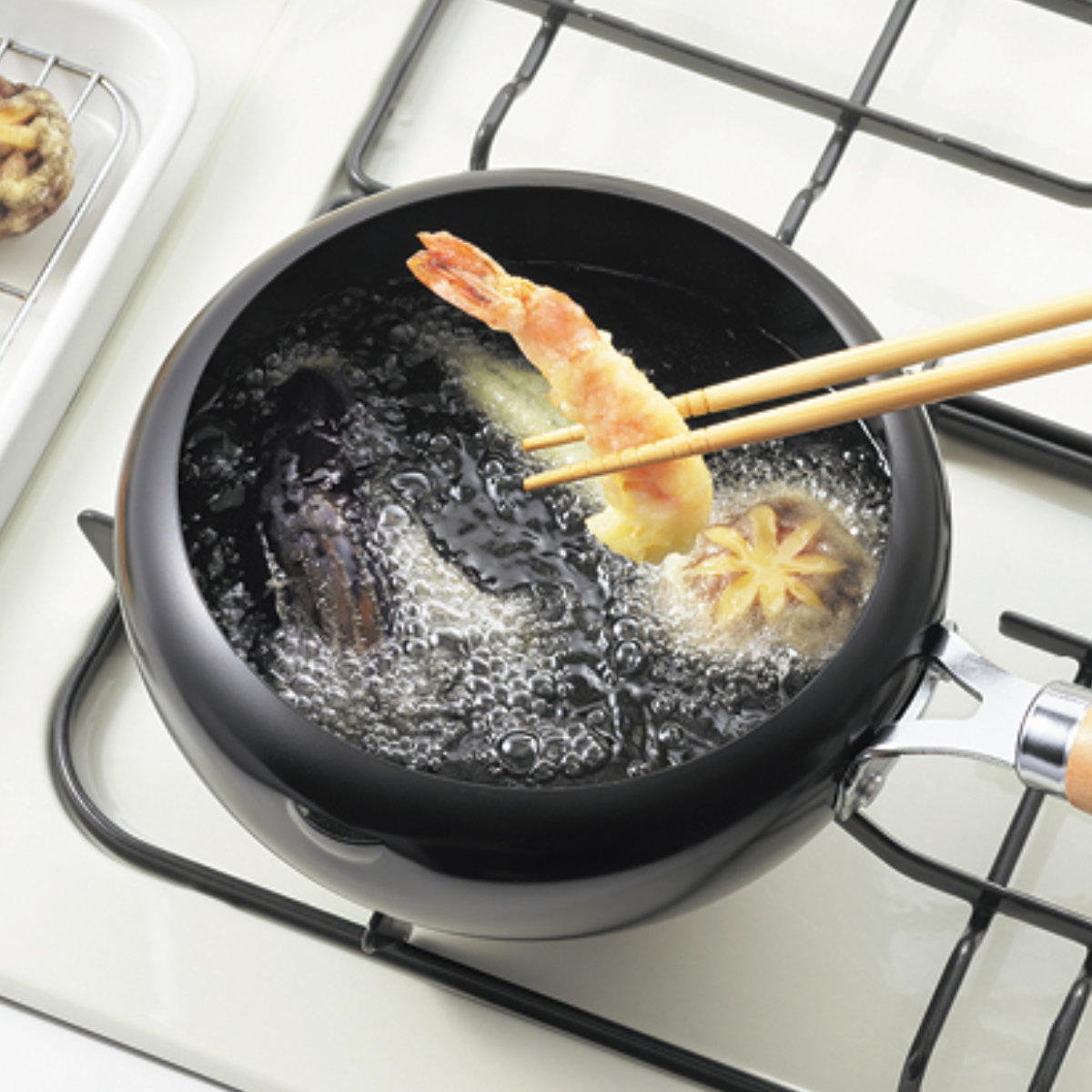 ●油はねを防ぎやすいガードタイプの鉄製片手天ぷら鍋です。
