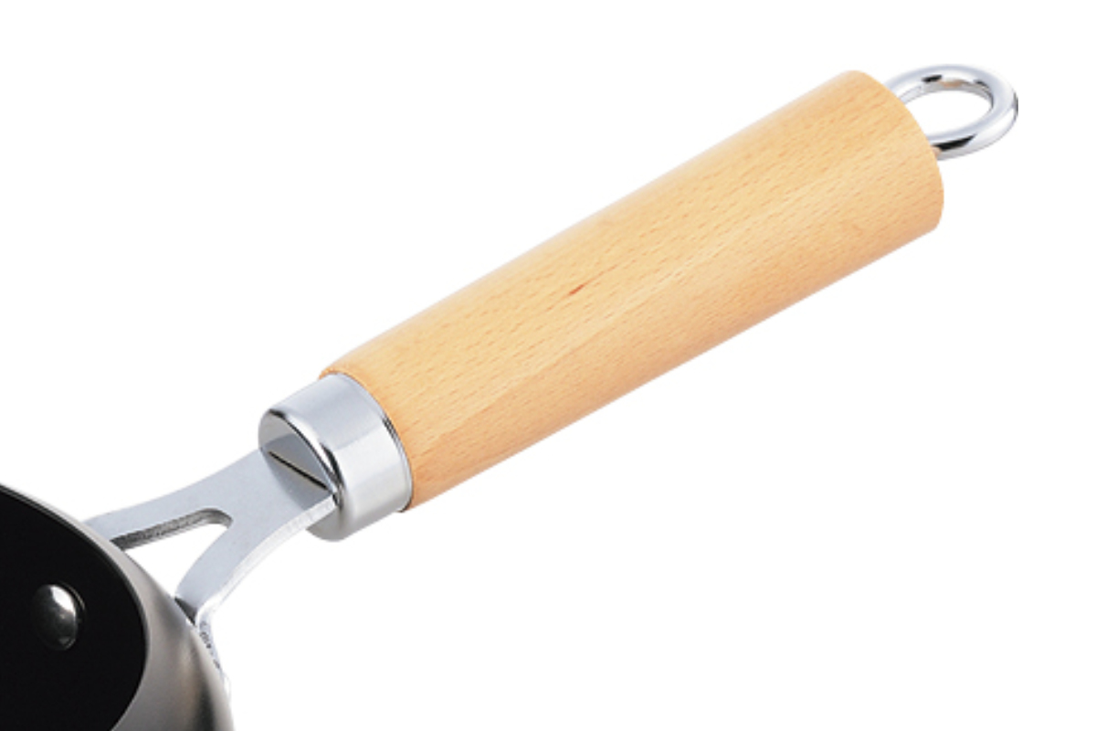 木柄なので調理中も熱くなりにくいです。先端に引っ掛け穴があり、掛けて収納することができます。