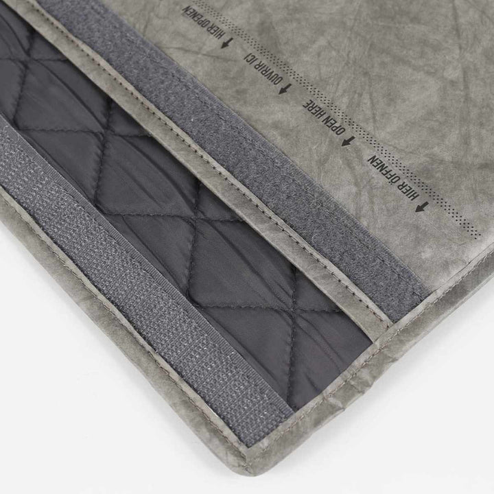 建材や宇宙服などにも使われているHDPE(高密度ポリエチレン)という素材を使用しているので、軽さ・強度・耐水性に優れています。クッション性もあるので、タブレット、パソコン、CD、書類など大切な物を守ってくれます。
