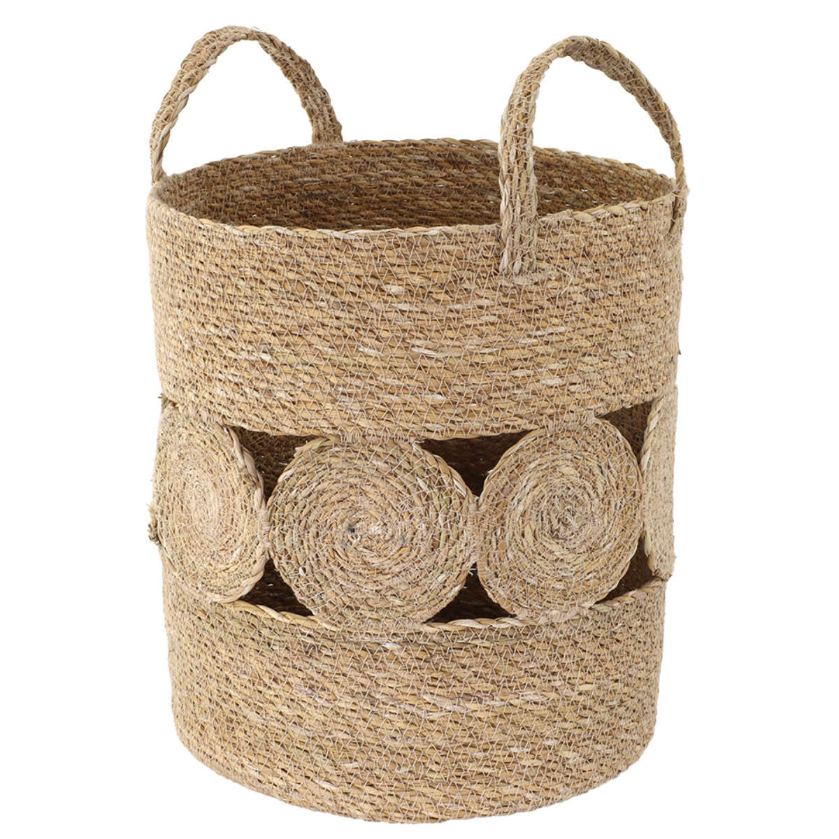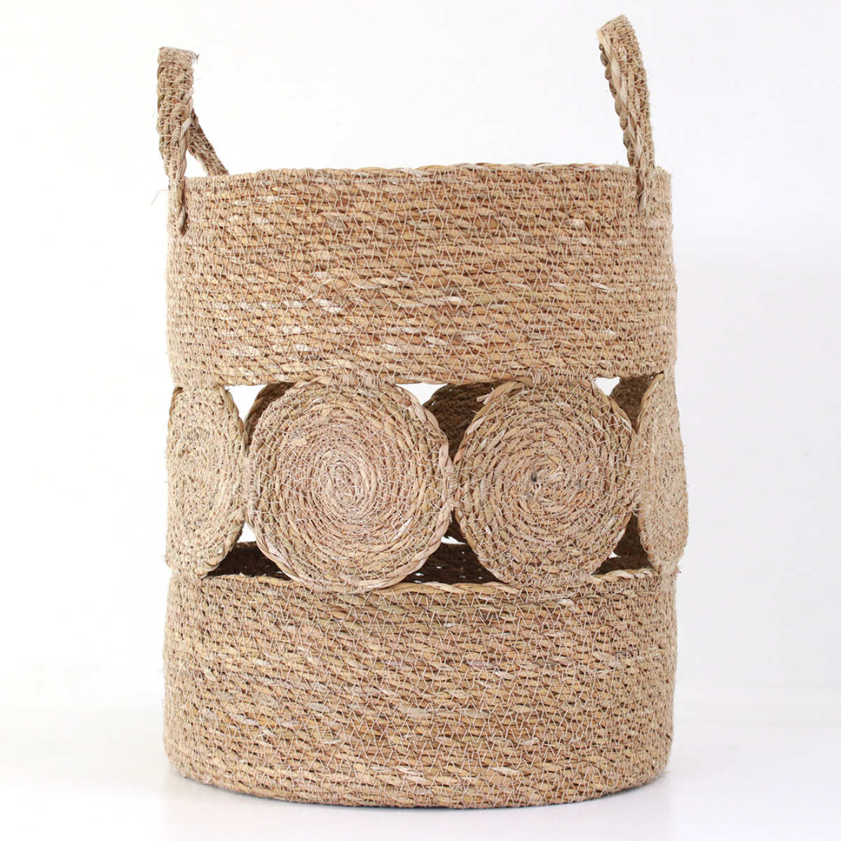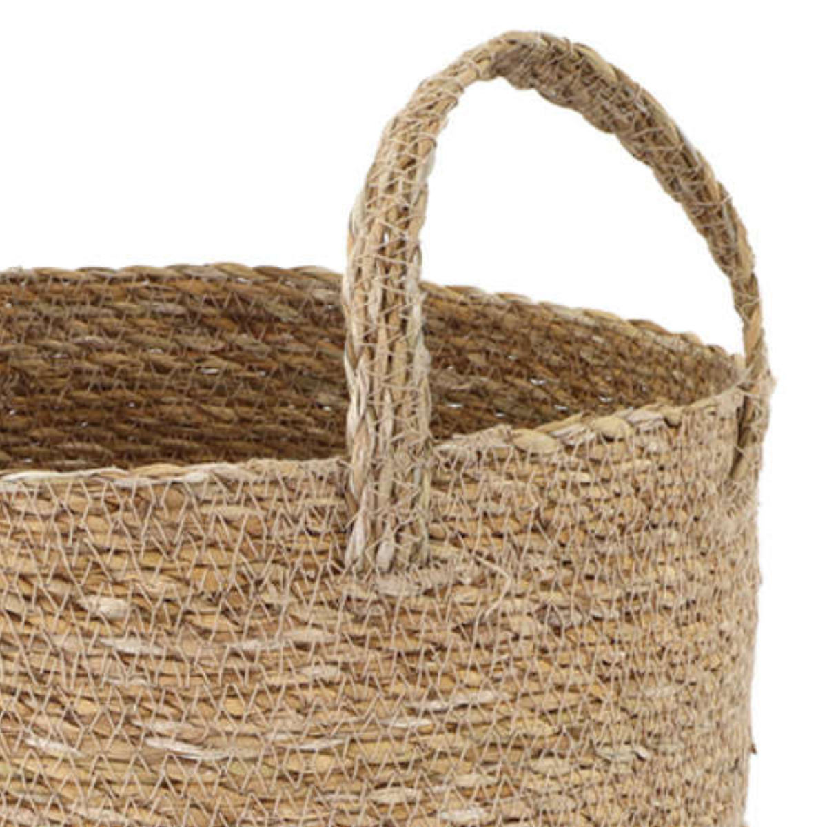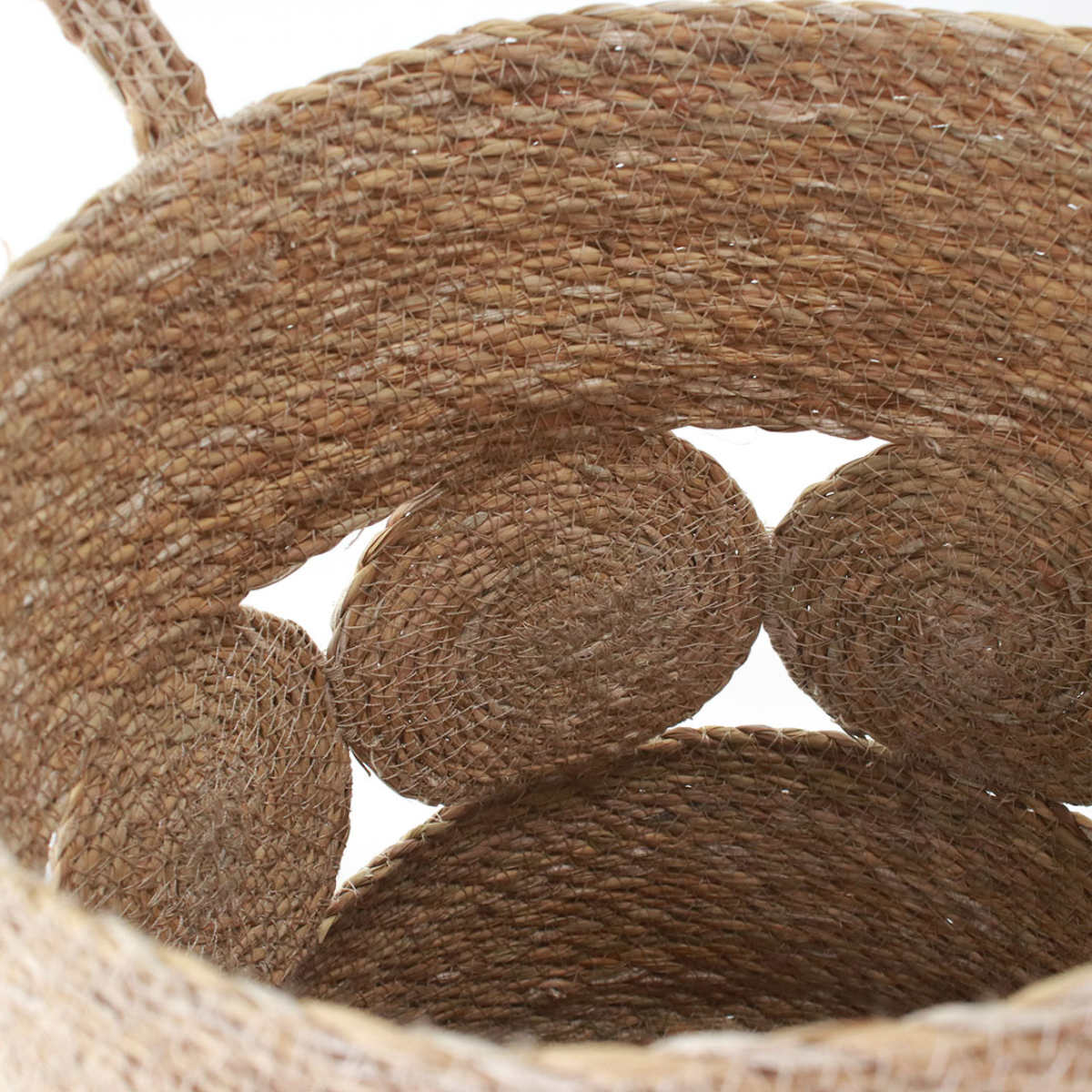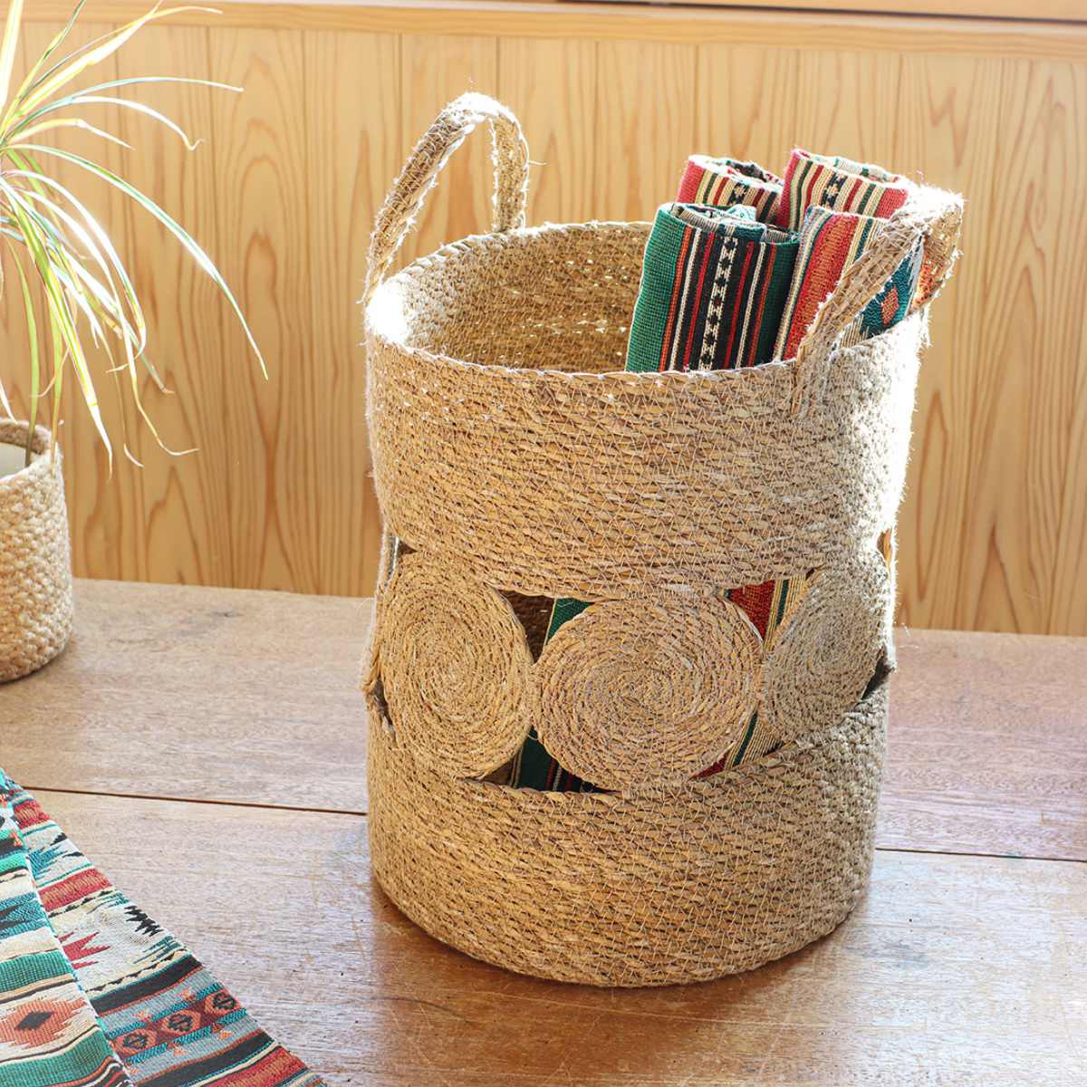 シーグラスで編んだ軽くてナチュラルな素材感のバスケットです。天然素材なので通気性がよく、衣類や食品の収納にも適しています。雑貨を入れたり、インテリアとして飾ったりと、アイデア次第でさまざまなシーンで活用できます。