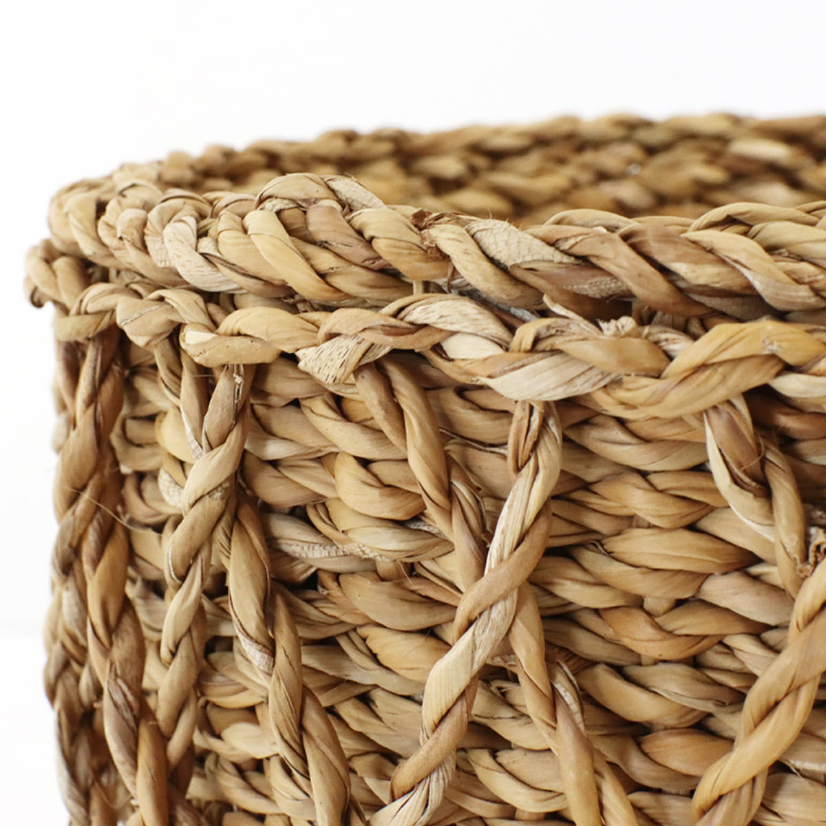 ジュートとシーグラスのコンビネーションが魅力的なバスケットです。天然素材なので通気性がよく、食品ストックや果物の収納にも適しています。雑貨を入れたり、インテリアとして飾ったりと、アイデア次第でさまざまなシーンで活用できます。