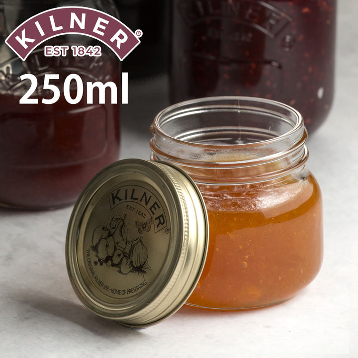 丸みのあるボトルにKILNERのロゴがエンボスされたクラシックなデザイン。彩りのある食材を入れて並べれば見栄えもよく、キッチンや食卓を飾ってくれるおしゃれアイテムに。ちょっと小分けに入れたい時にぴったりな250mlサイズです。