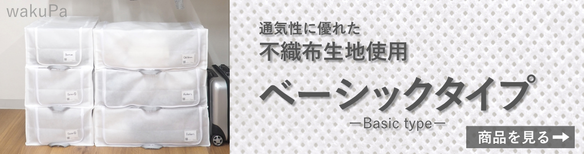 wakuPa(ワクパ)の「スタイルタイプ」は丈夫なポリエステル生地を使用しているので、汚れたら洗濯が可能です。劣化にも強いため、不織布の収納袋に比べると長く使えるのも嬉しいポイントです。