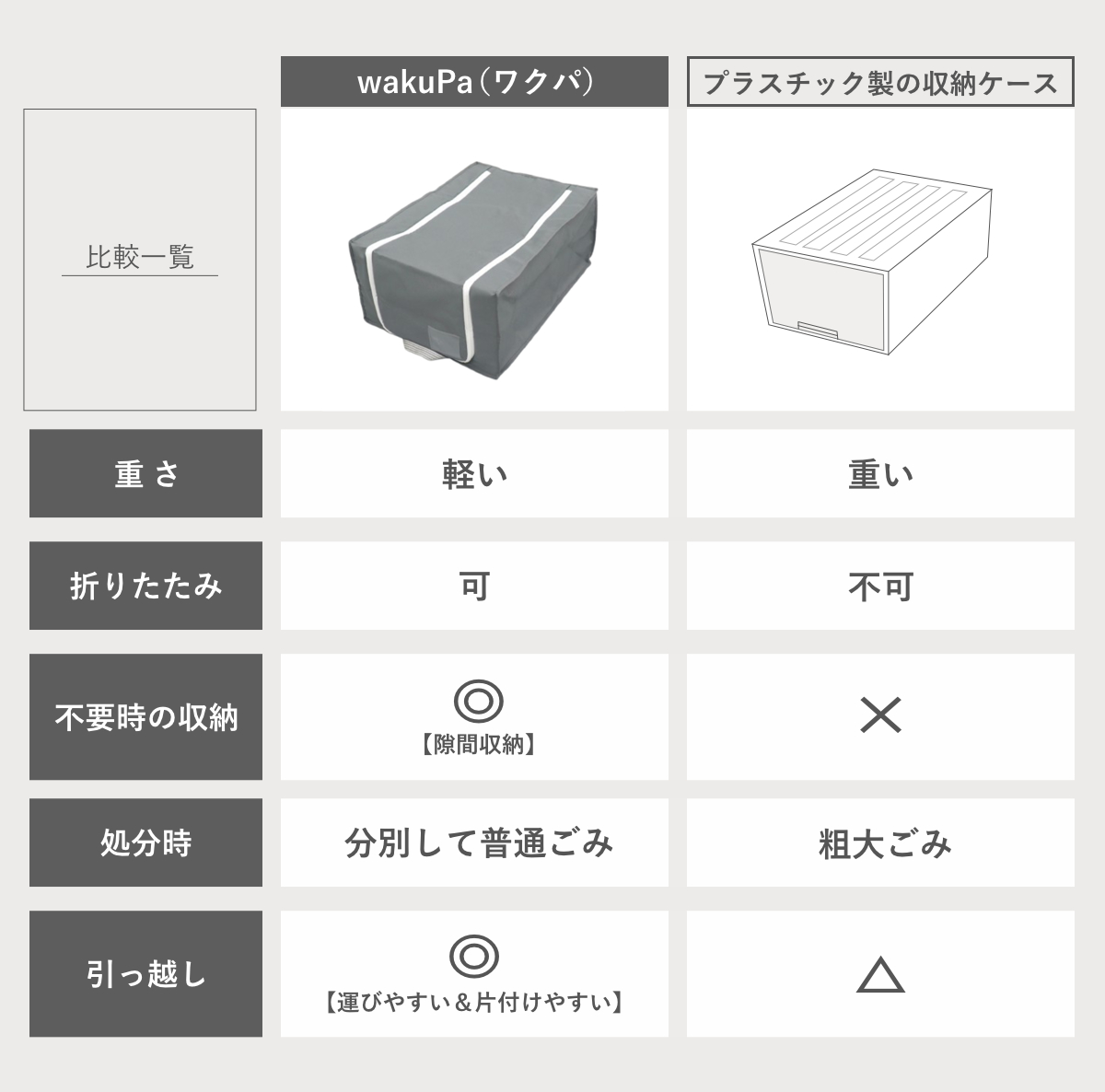 扱いやすい収納アイテムなので、引っ越しが多い方などにおすすめの商品です。