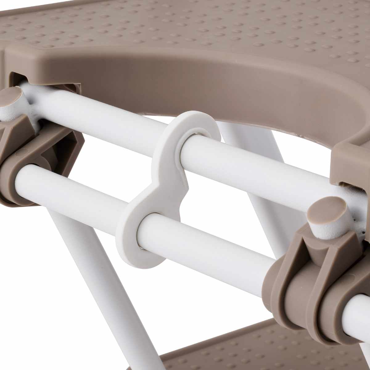 昇っている時に閉じてしまうなどの危険から守る、安全ロック機能付きです。表面には、滑りにくいエンボス加工がほどこされているので登り下りや作業時も安心です。