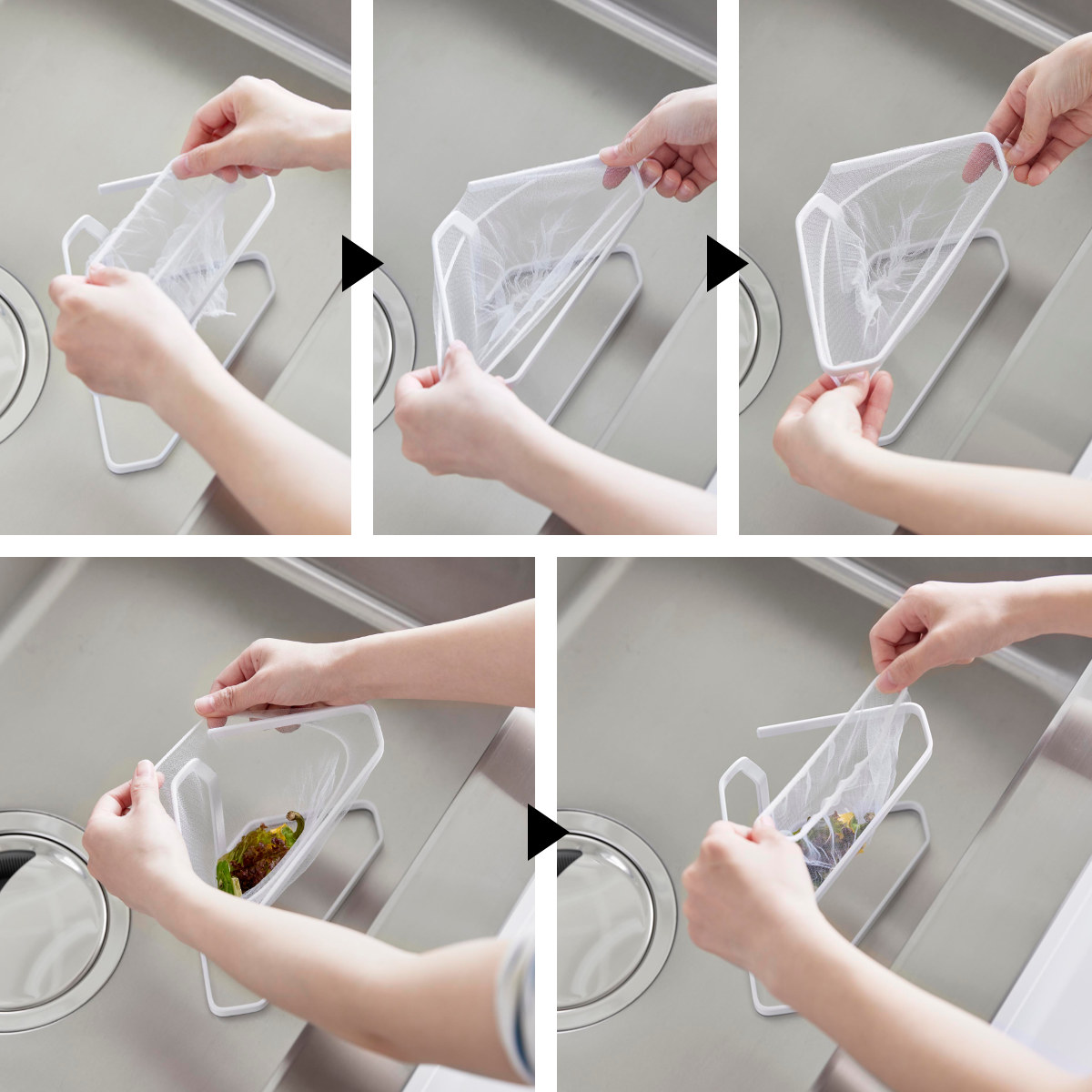 | 備考 | 【対応サイズ】 伸長時:幅25cm以上の浅型水切りネット マチ付き:幅19cm以上 マチなし:幅25cm以上のポリ袋 |