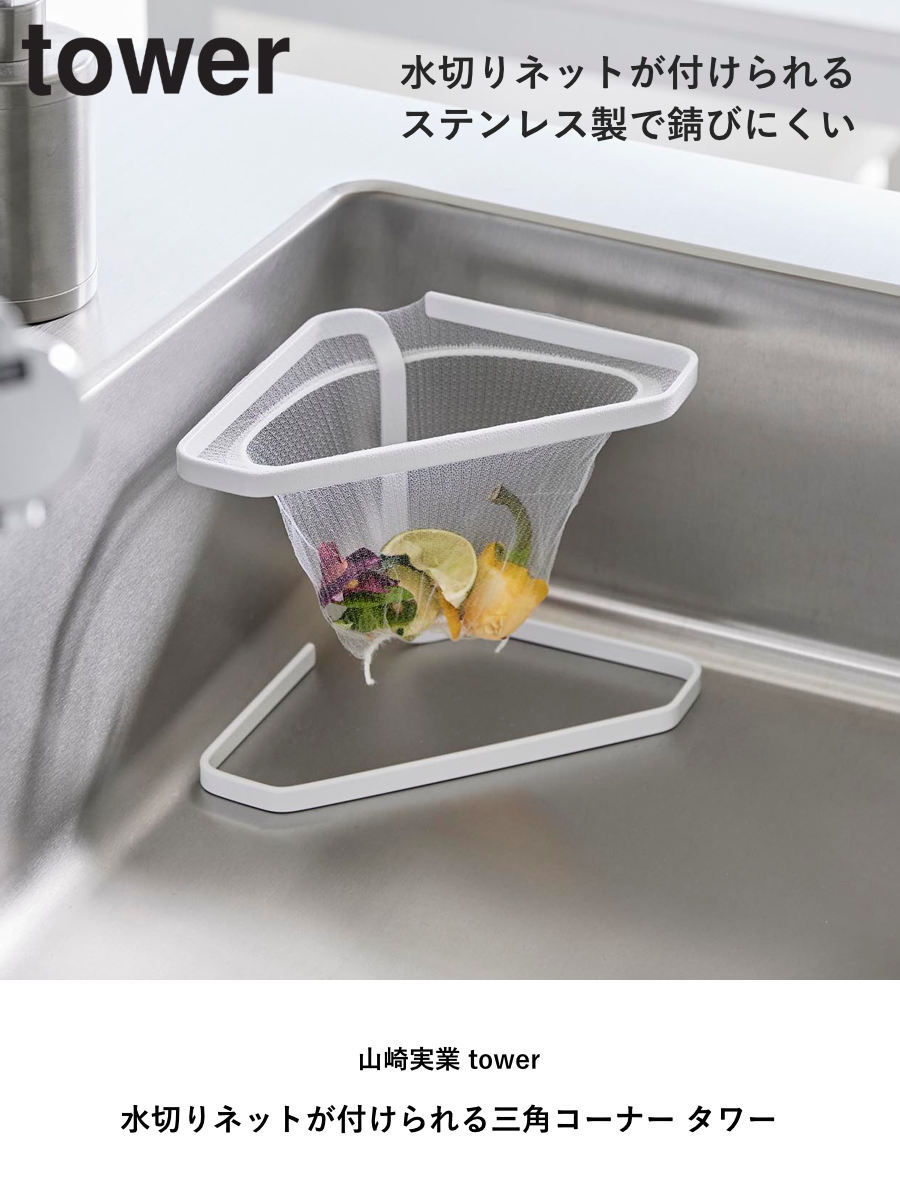 山崎実業 tower 水切りネットが付けられる三角コーナー タワー