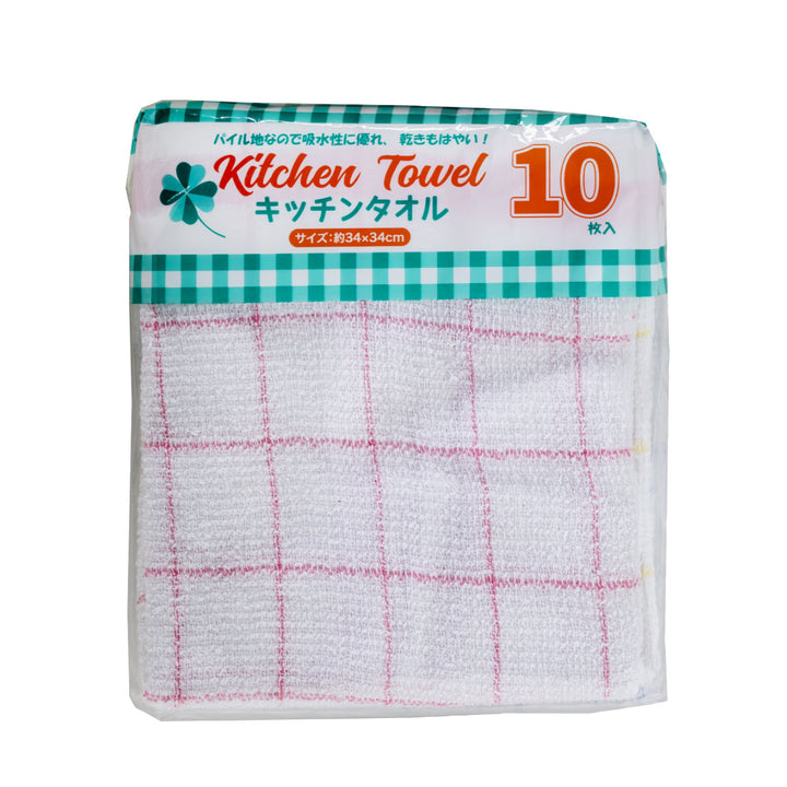 吸水性に優れたパイル地のキッチンタオルです。水気をしっかり拭き取り、乾きも早いので日常使いにぴったりです。シンプルで使いやすい格子柄デザインです。10枚入りなので水回りや食器拭き、お掃除用など、用途ごとに使い分けができます。
