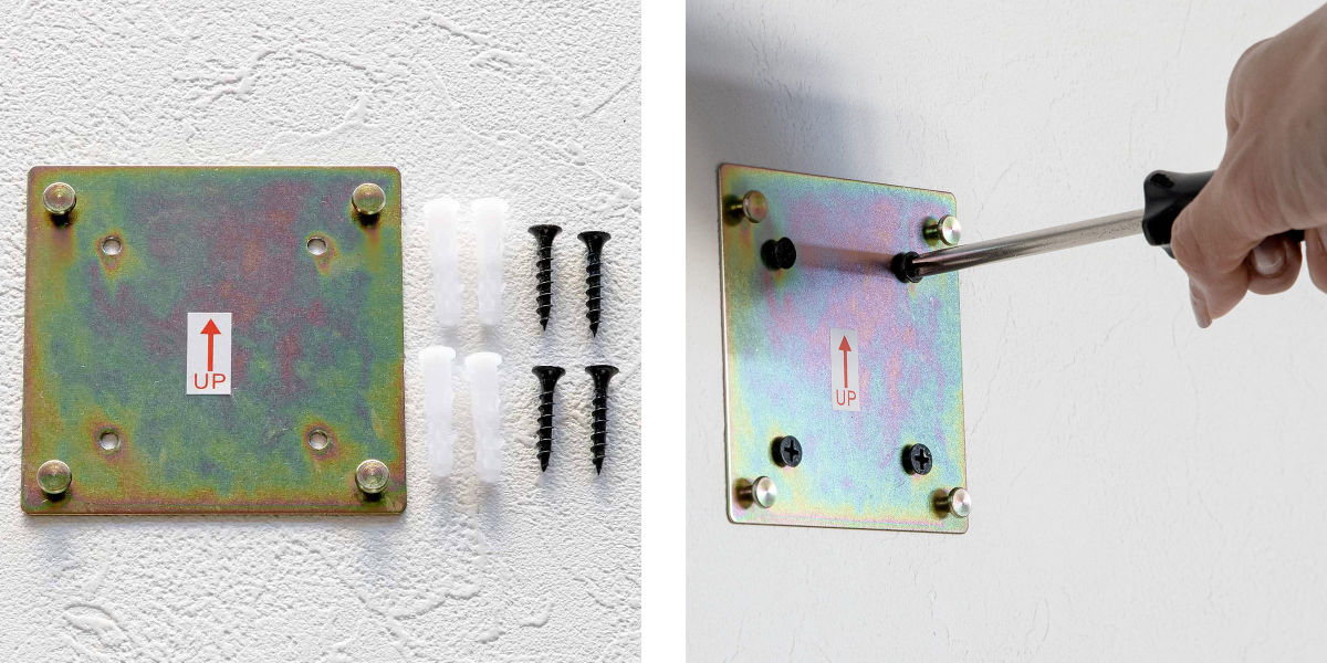 付属の取付けプレートを先に壁にネジで取り付けます。