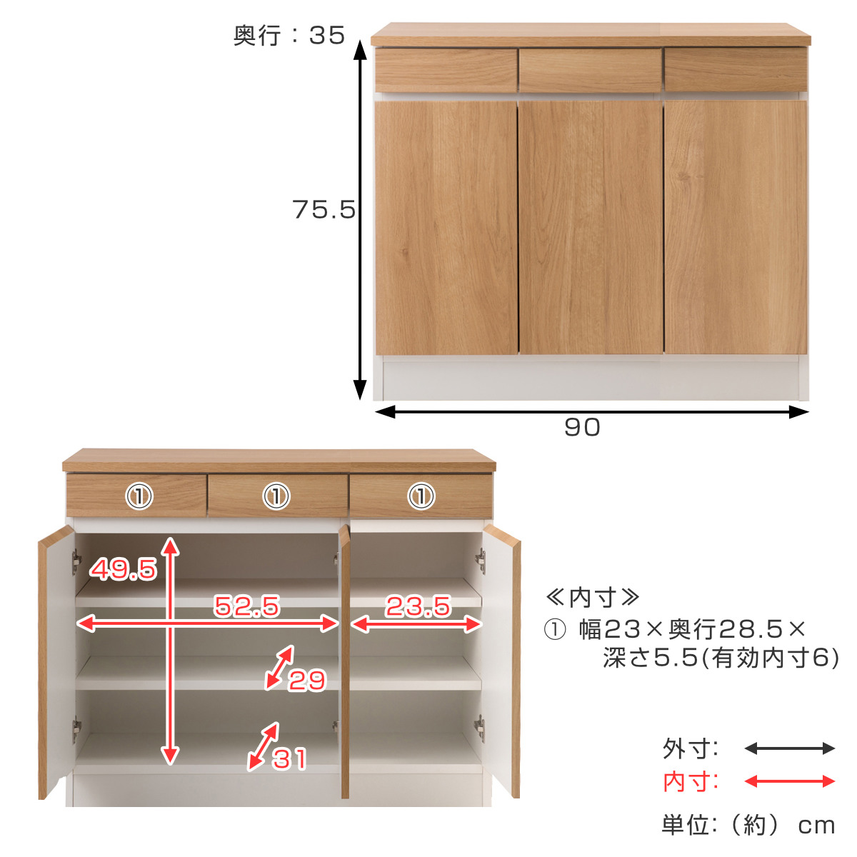 リビングボード 幅90cm カウンター下収納 GYMシリーズ 日本製 完成品
