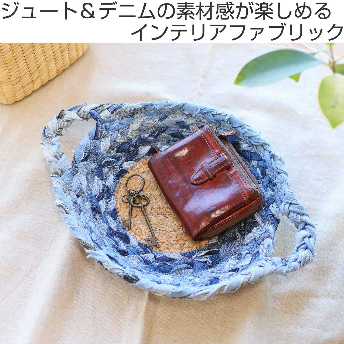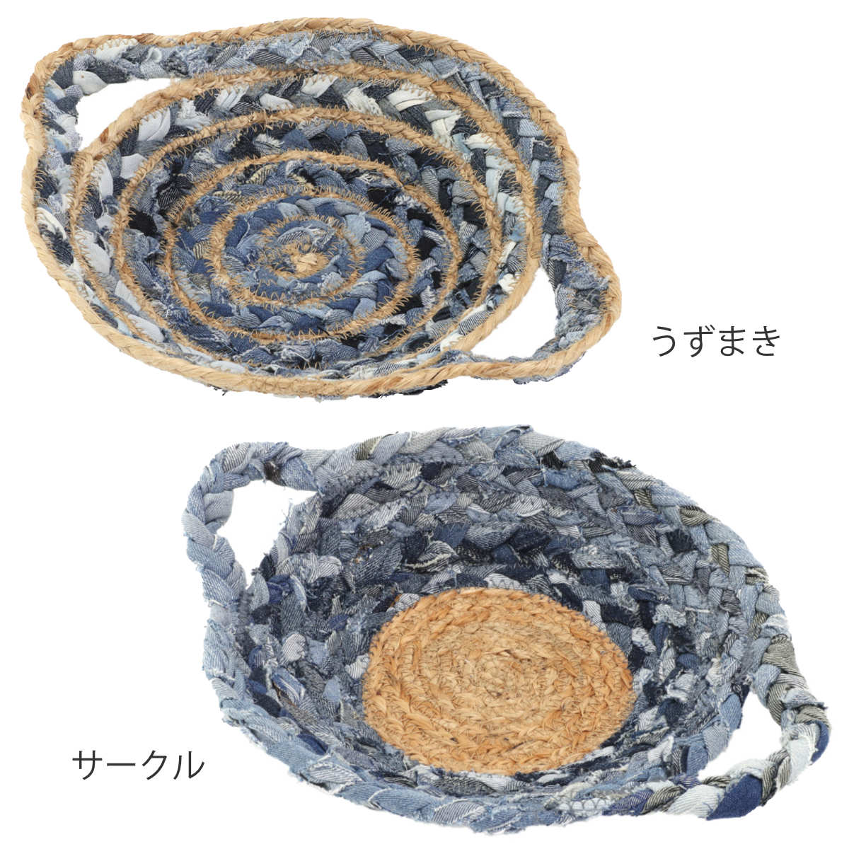 小物入れ ラウンド ジュートデニムトレイ S 25cm