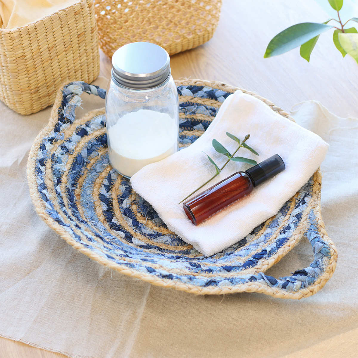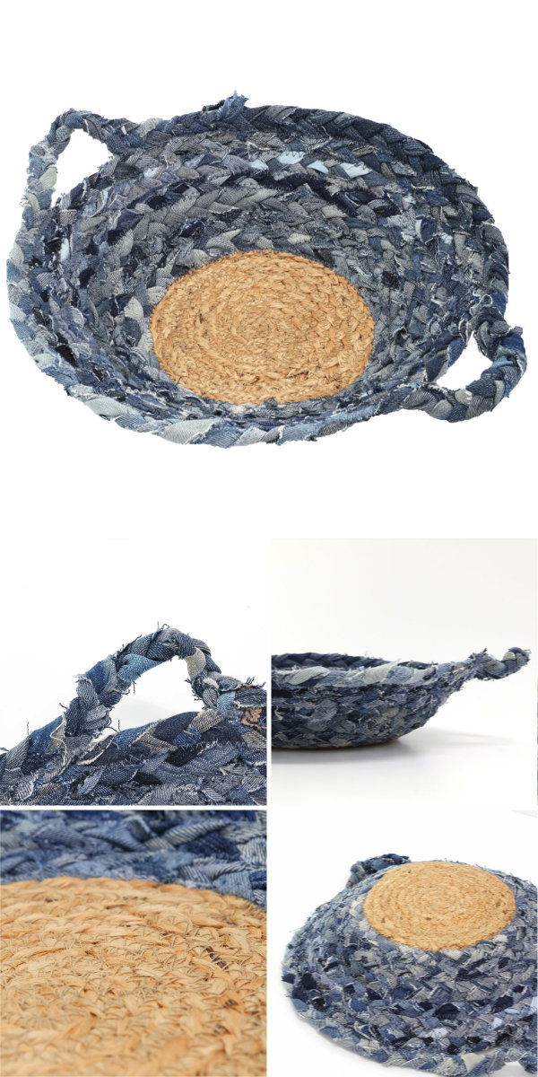 リサイクルデニムを編み込んで作られたデニムチンディの切れ端を再利用し、ジュート素材と組み合わせた環境に優しいエコなトレイです。