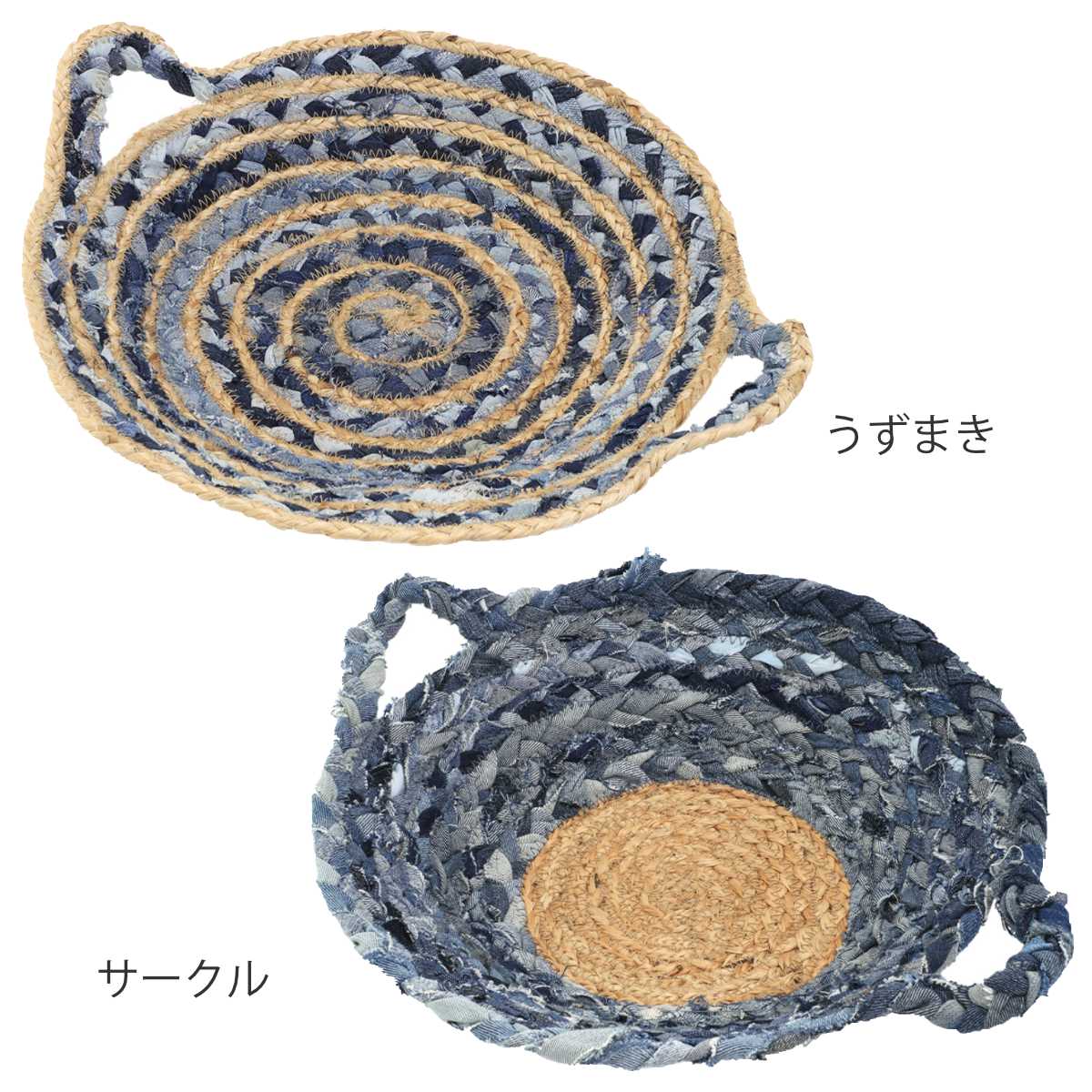 小物入れ ラウンド ジュートデニムトレイ L 35cm