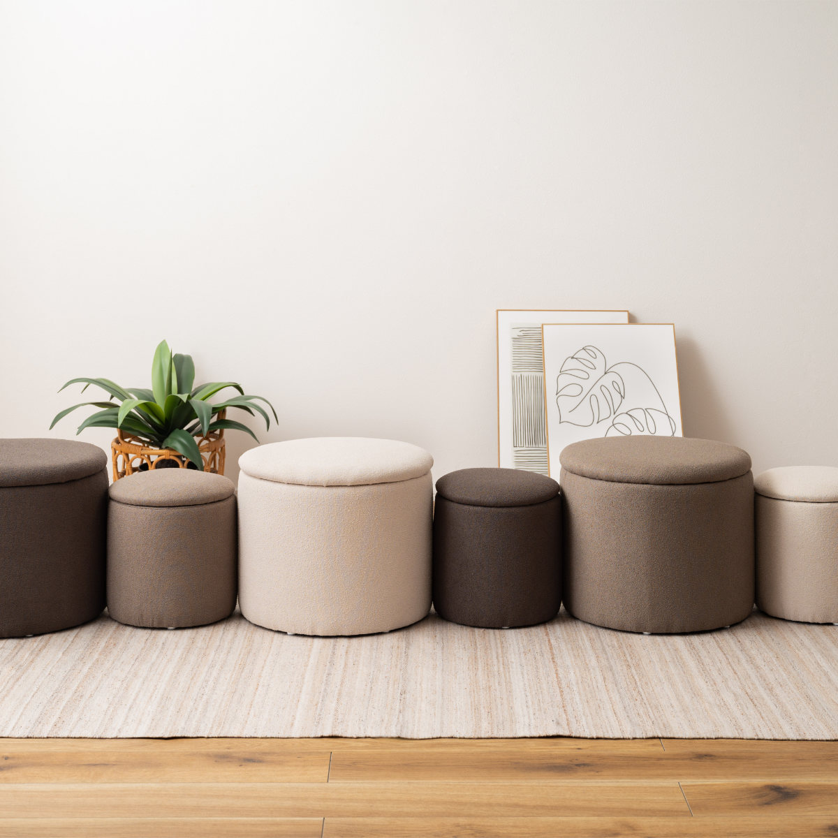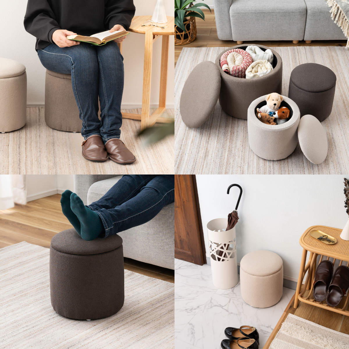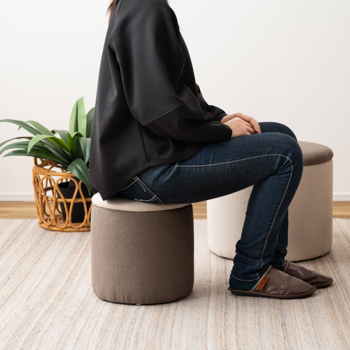 スツールや収納ボックス、オットマンやサイドテーブルなどマルチに活躍してくれます。玄関スツールとしても便利です。