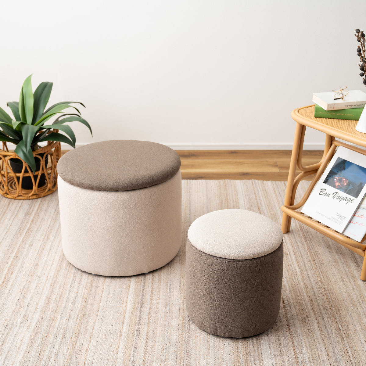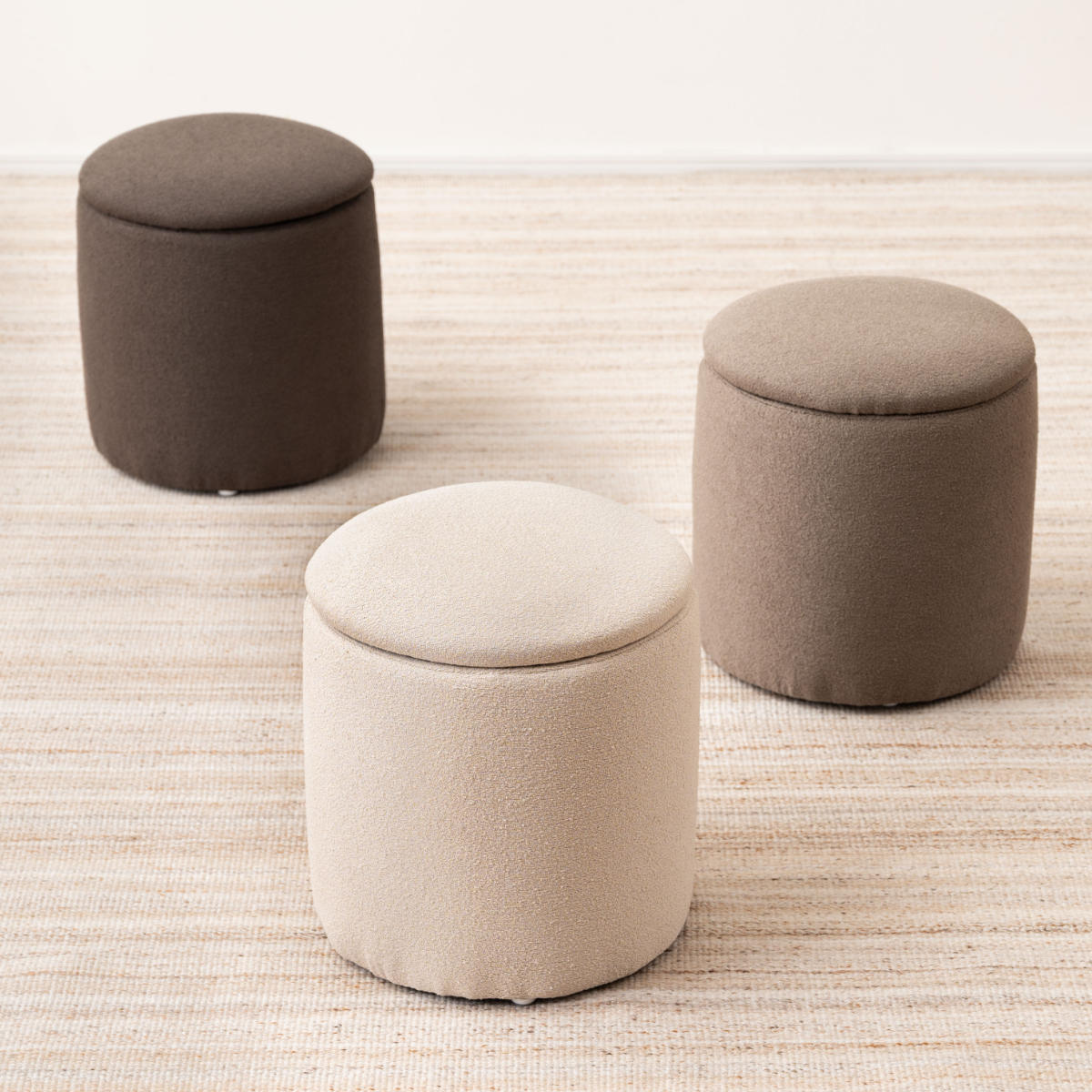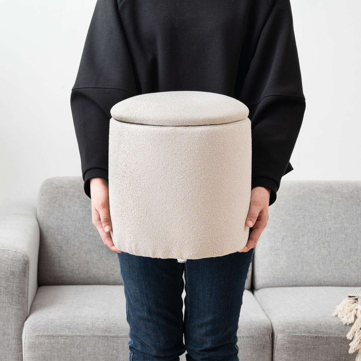 丸みを帯びたフォルムが可愛らしいデザインの収納スツールです。座面を外すと中はおもちゃや小物などが収納できるスペースになっています。1台で座ると収納するのどちらも兼ね揃えた便利なアイテムです。