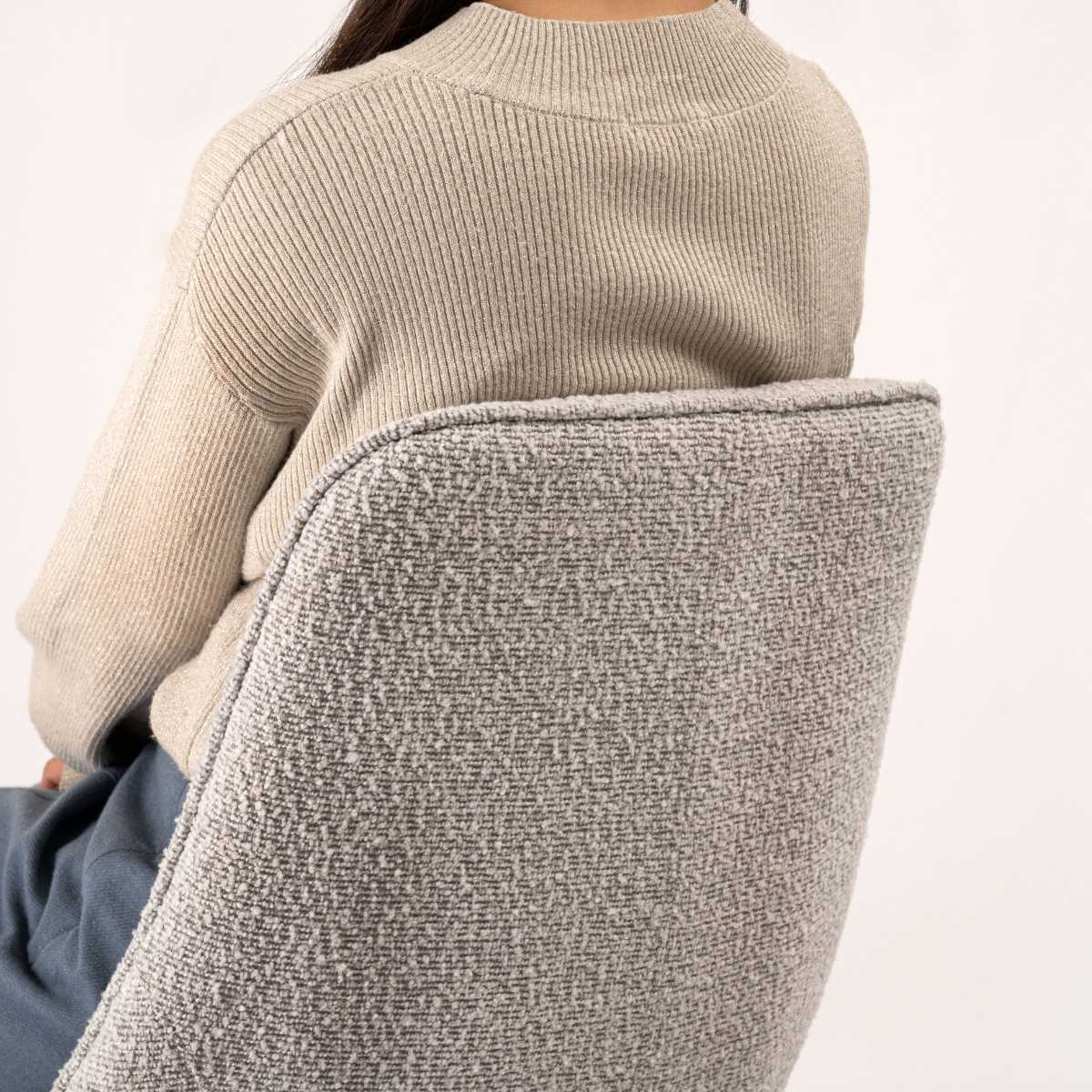 立体的で動きのあるファブリック生地を採用し、シンプルで洗練されたデザインの回転チェアです。座面が回転することで、立つ・座る・振り向きの動作が楽に行えます。アームレスタイプですので圧迫感が無く、お部屋をスッキリとた印象にしてくれます。