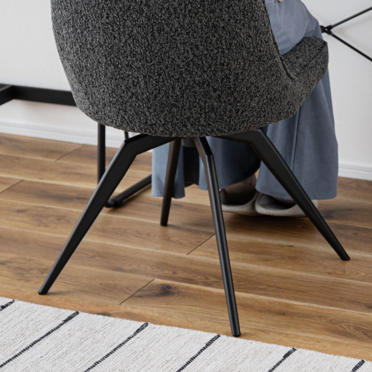 細身の脚がスタイリッシュで、ブラックスチールを使用することで高級感が漂います。