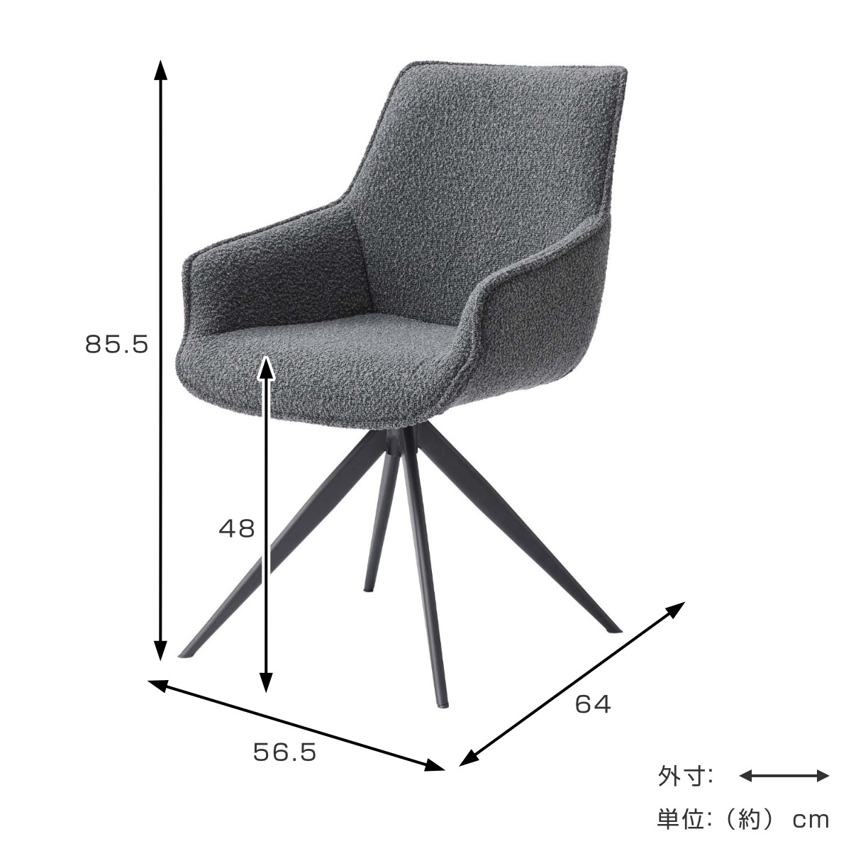 ダイニングチェア 座面高49cm 回転 肘掛け付き ファブリック
