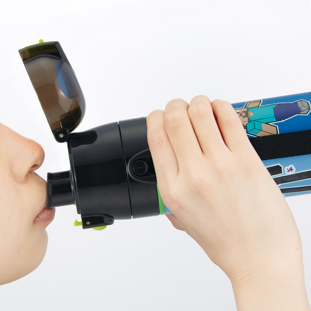蓋が固定できるキャップロック設計です。飲んでいる時に蓋が邪魔にならず、片手で素早くスムーズに水分補給できます。