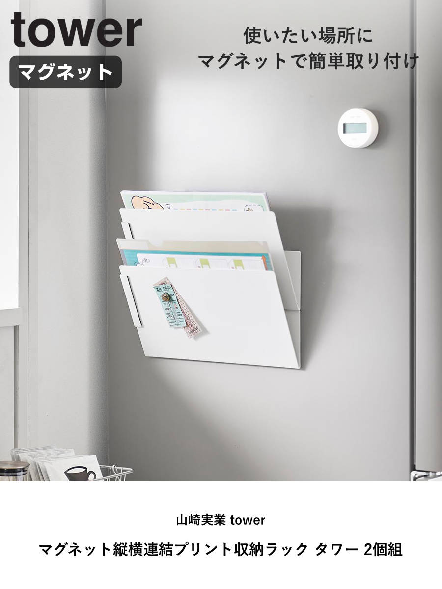 山崎実業 tower マグネット縦横連結プリント収納ラック タワー 2個組