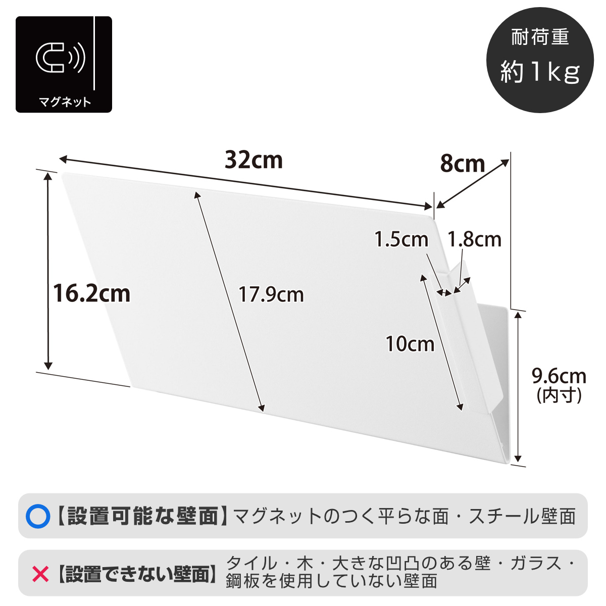 | 備考 | 【使用できる面】 マグネットがつく平らな面・スチール面 |