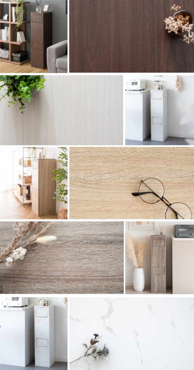 | 種類 | ブラウン、ホワイト、ナチュラル、グレージュ、大理石×ホワイト |
