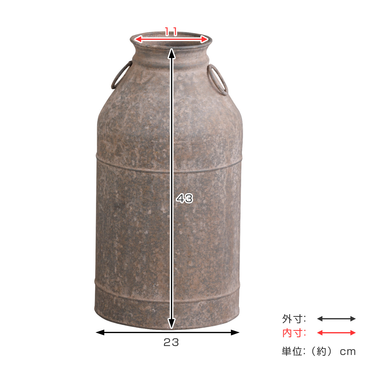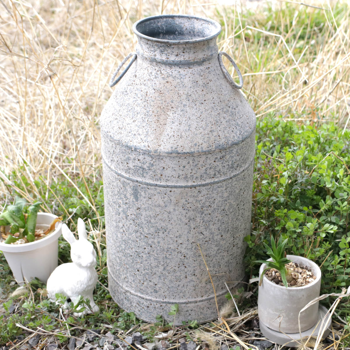 ヴィンテージ加工が施された存在感抜群のミルクカン。お庭のアクセントとしてそのまま飾ったり、スワッグを飾ったり、玄関で傘立てとしてのご使用もおすすめです。
