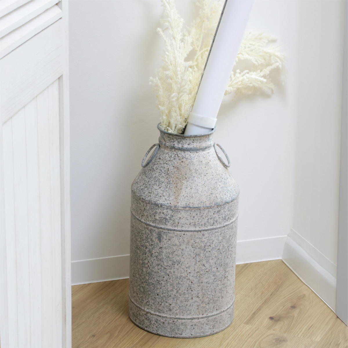 空間の印象をグッと引き上げてくれる丁度良い大きさのミルクカンなので、造花や大き目のスワッグを飾ったり、ポスター等の長さのある物を入れて、見せる収納としてもおすすめです。置くだけで一気にお部屋がセンスアップします。